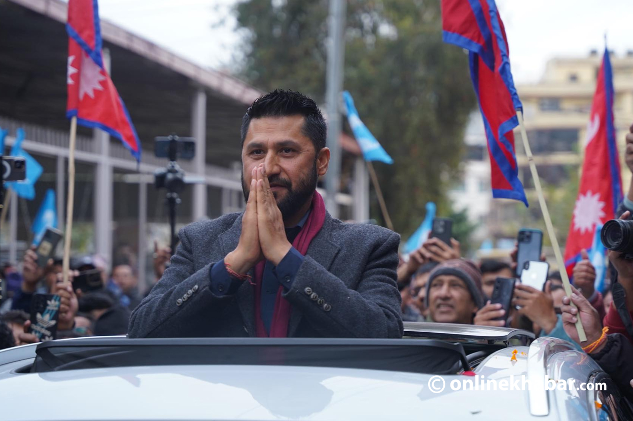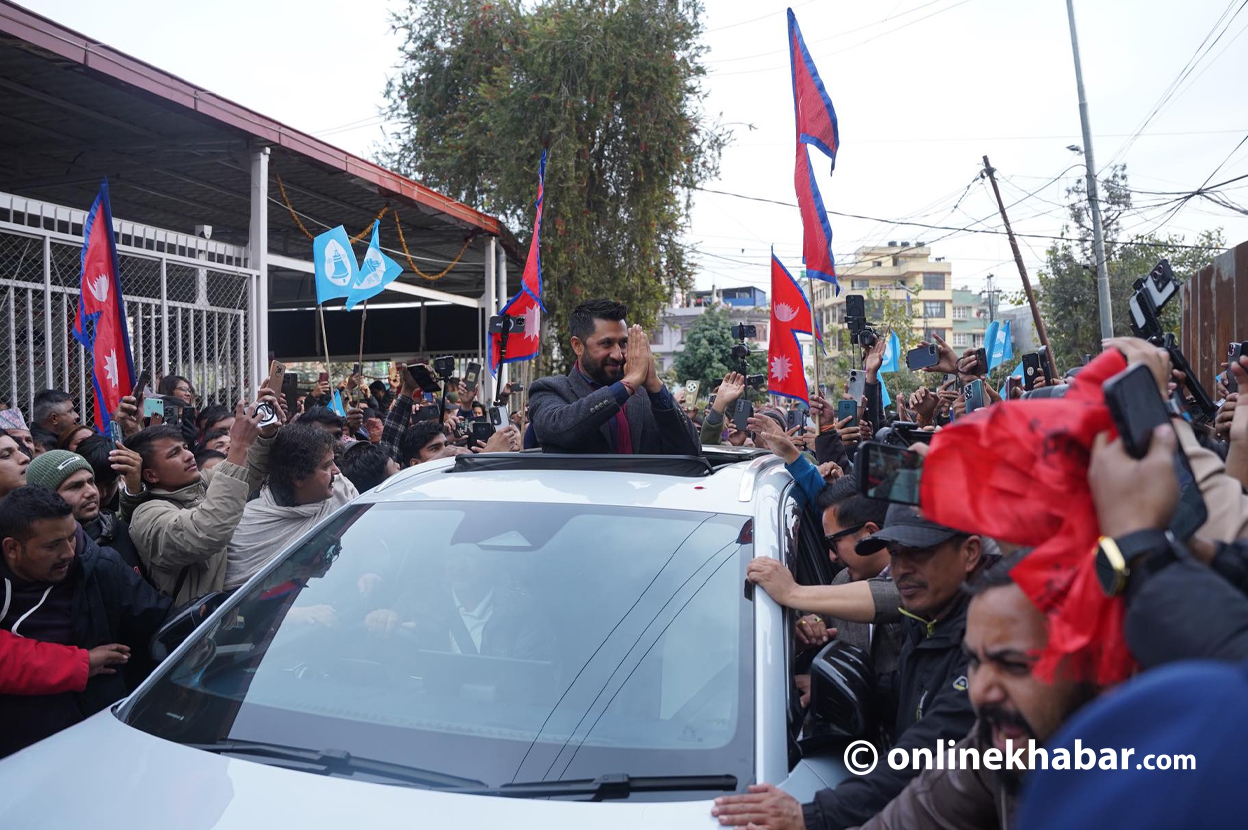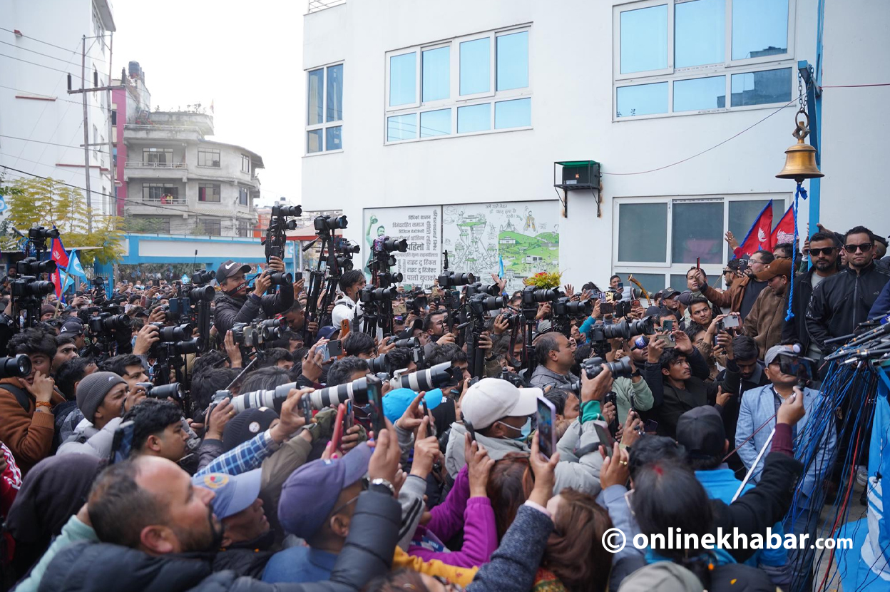 उनलाई बाजागाजासहित अहिले पार्टी कार्यालयमा स्वागत गरिएको छ । उच्च अदालत तुलसीपुरको बुटवल इजलासमा धरौटी बुझाएर लामिछाने हिजोमात्रै काठमाडौं आइपुगेका थिए ।