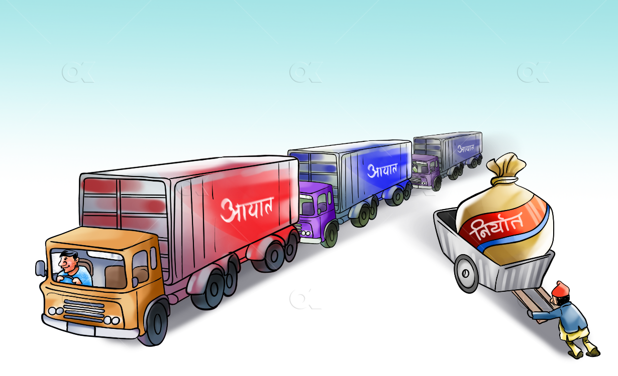 - मंसिर मसान्तसम्म आयात ७ खर्ब ६६ अर्ब १८ करोड र निर्यात १ खर्ब १६ अर्ब ५० करोड पुगेको छ, निर्यात ५८.१७ प्रतिशतले वृद्धि भएको छ।