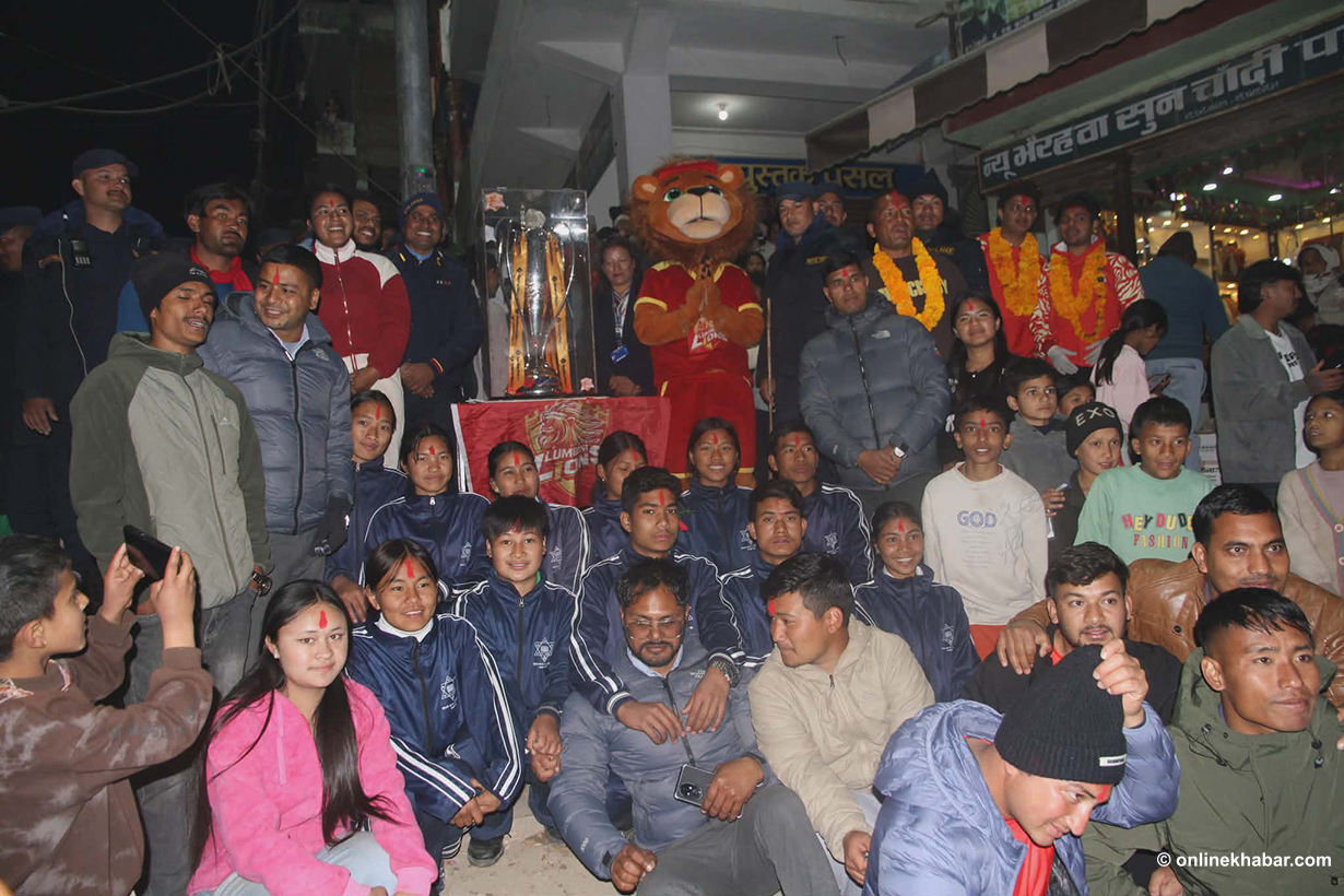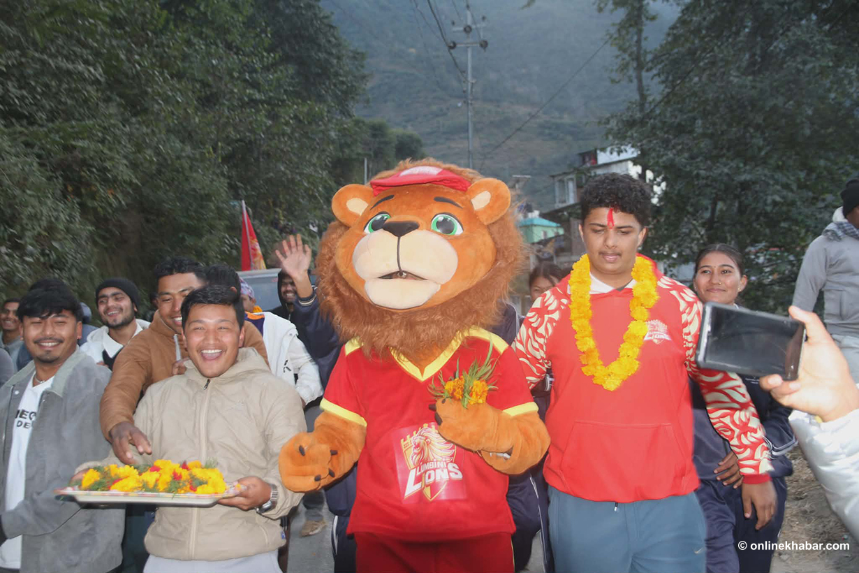 ८ पुस, रुकुमकोट । नेपाल प्रिमियर लिग (एनपीएल)को दोस्रो संस्करणको विजेता लुम्बिनी लायन्स यतिबेला खुसी साट्न मैदानबाट जनस्तरमा पुगेको छ । ‘च्याम्पियन्स ट्रफी सेलिब्रेसन टुर’ अन्तर्गत सोमबार लुम्बिनीको टोली देशकै कान्छो जिल्ला रुकुमपूर्व पुगेको छ । साँझको समयमा ट्रफीसहित विजेता टोली आइपुग्दा वातावरण निकै उत्साहपूर्ण बनेको बन्यो ।