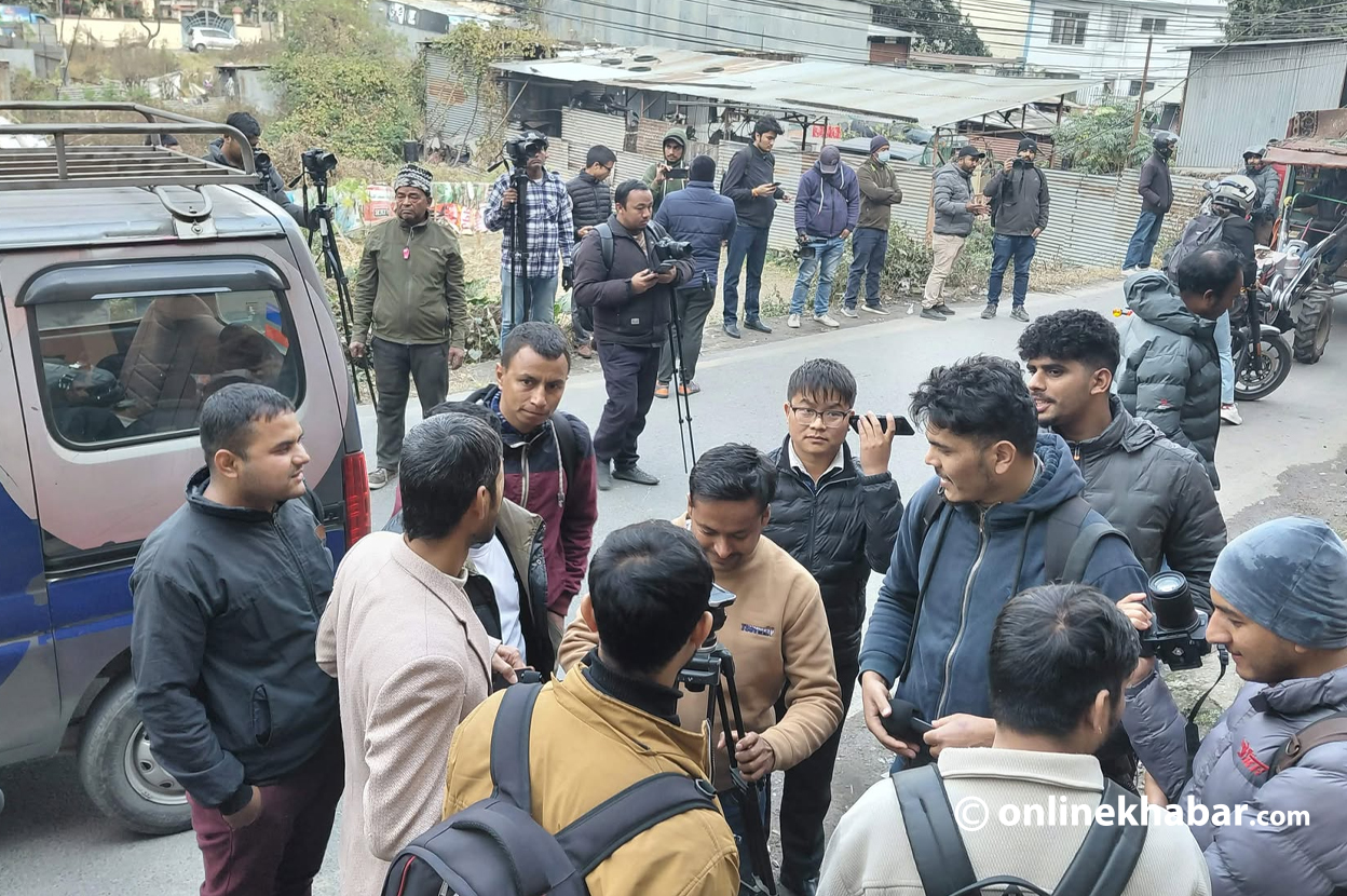 ‘हाम्रो दुईजना नेताहरू भित्र हुनुहुन्छ । जबसम्म उहाँहरू दुई जना मिल्नुहुन्नँ, तबसम्म यो गेट खोलिँदैन । हामीले यहाँ ताला लगाएर राखिदिएका छौं,’ गुरुङले भनेका छन् ।