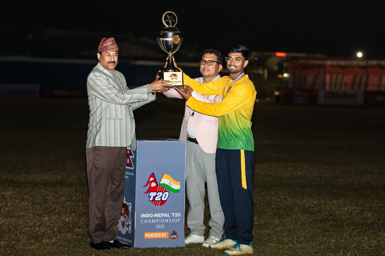 Generated by OK AI. Editorially reviewed.- चितवन क्रिकेट क्लबले एपीएफ क्लबलाई एक विकेटले पराजित गर्दै इन्डो नेपाल टी–२० च्याम्पियनसिपको उपाधि जितेको छ।