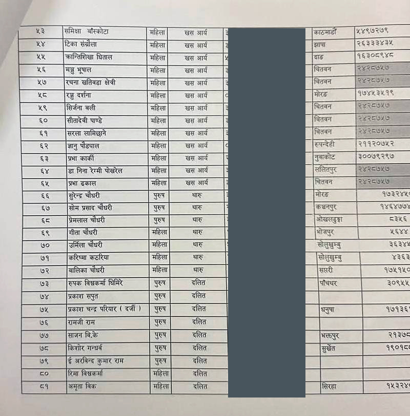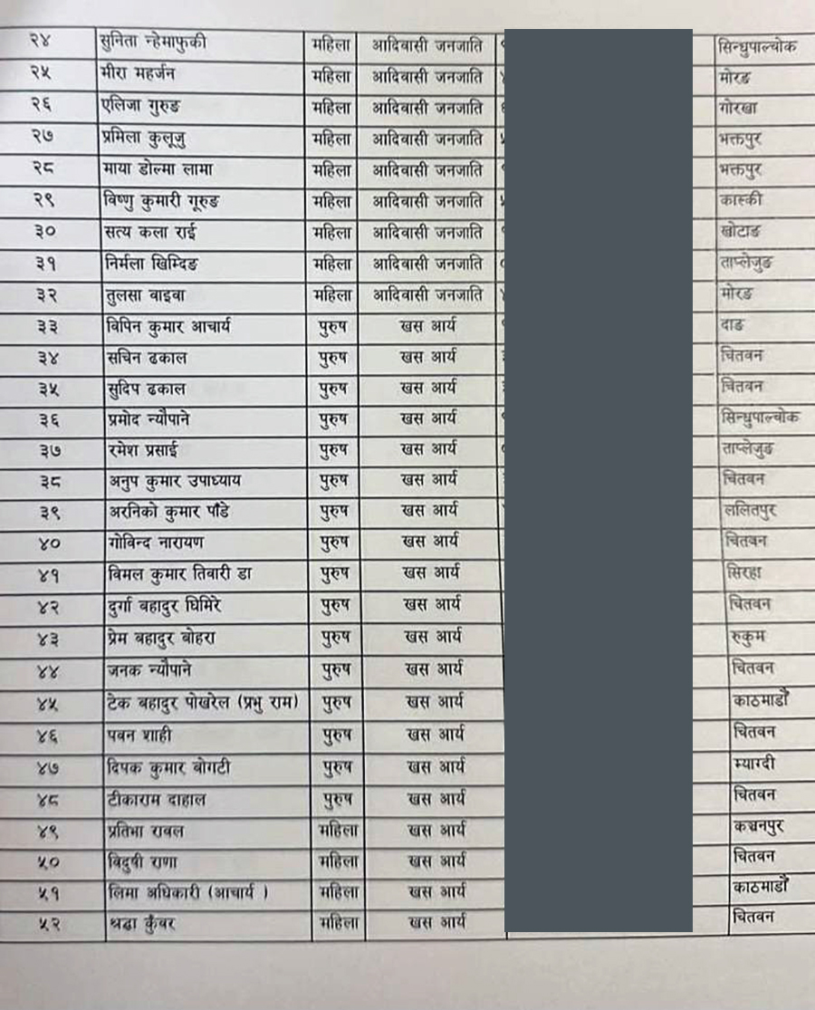 समानुपातिकको बन्दसूचीमा आदिवासी जनजातिको पुरुषतर्फ पहिलो नम्बर डा. राम रामा छन् । क्रिकेटर ज्ञानेन्द्र मल्लको नाम पाँचौं नम्बरमा छ ।