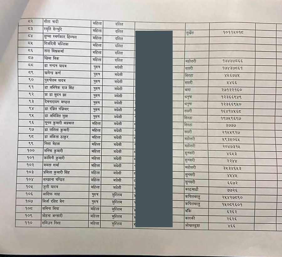 मधेशी समुदायको पुरुषतर्फ पहिलो नम्बरमा डा. नन्दन यादव र महिलातर्फ पुनम कुमारी अग्रवाल छन् ।