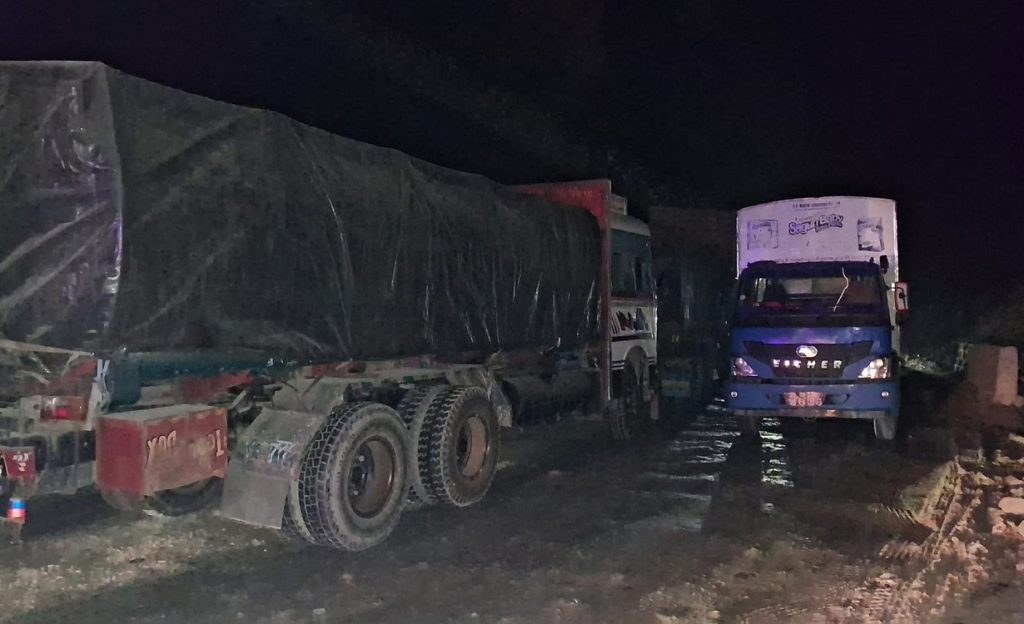 शीतले सडक चिप्लो भएपछि दाउन्नेमा १५ घण्टादेखि यातायात अवरुद्ध