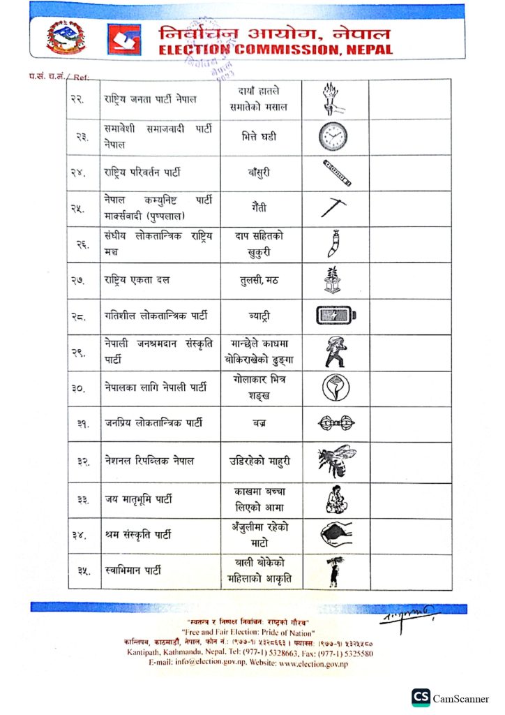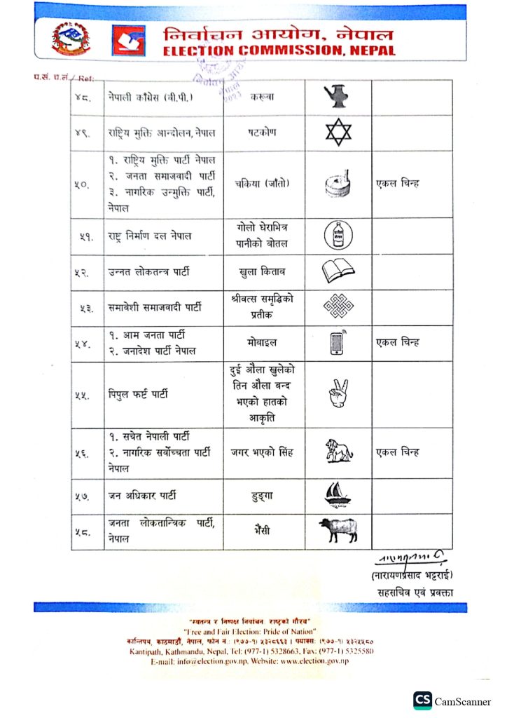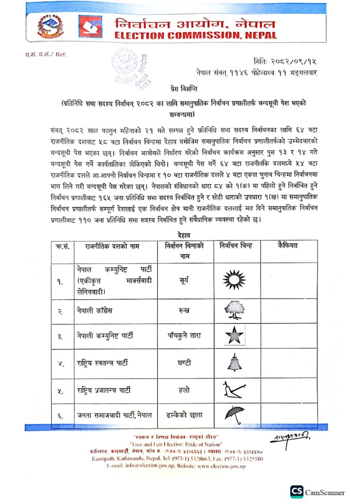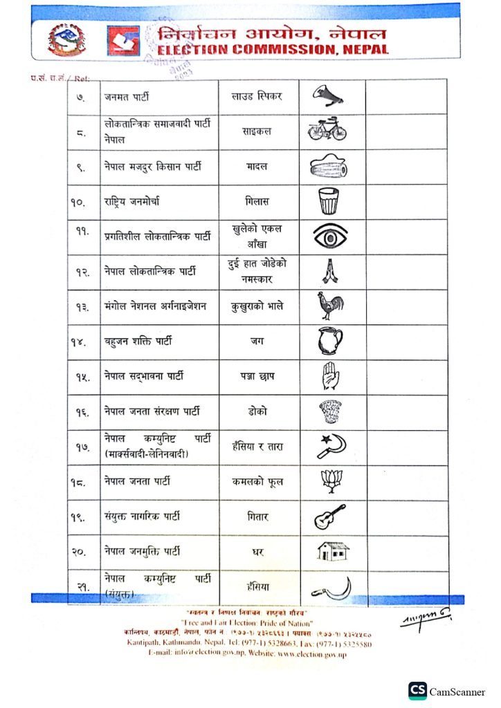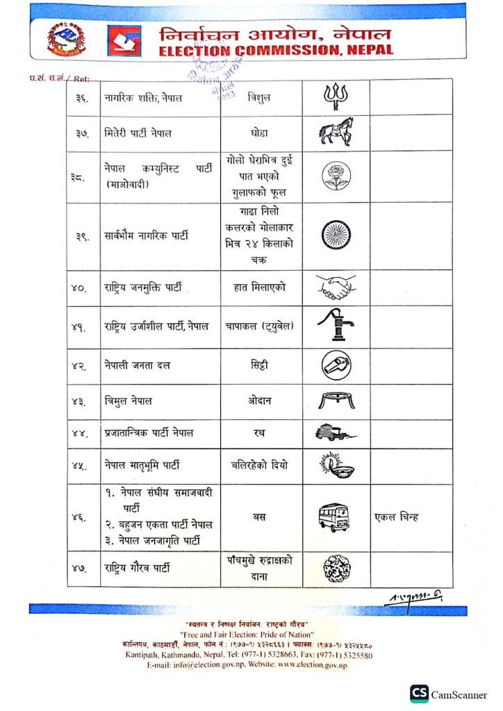 - निर्वाचन आयोगका अनुसार ५८ निर्वाचन चिह्नमा चुनाव लड्ने गरी बन्दसूची पेस भएको छ।