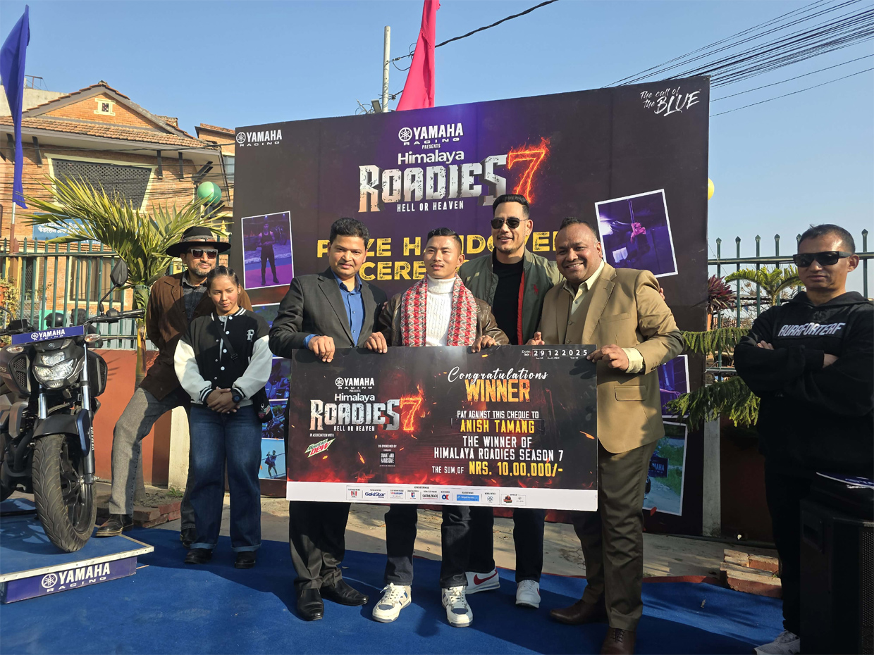 काठमाडौं । टिभी रियालिटी शो ‘हिमालय रोडिज’ को सातौं सिजनका विजेतालाई पुरस्कार हस्तान्तरण गरिएको छ । मंगलबार आयोजित समारोहमा टेलिभिजन र प्रायोजकको तर्फबाट उपाधि विजेता अनिश तामाङलार्ई पुरस्कार प्रदान गरियो ।