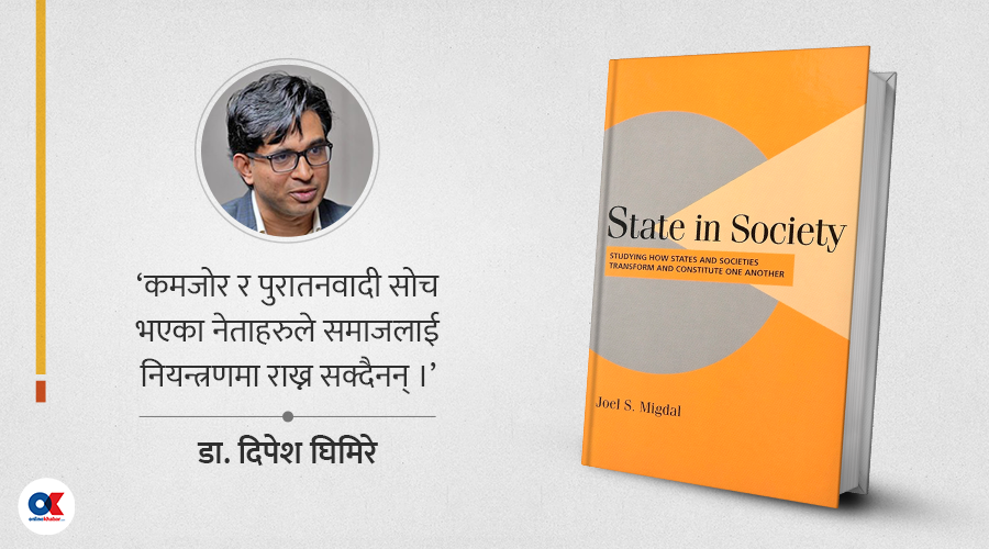 मिग्डलले आफ्नो पुस्तकमा भने जस्तै राज्य र समाजको बहस नेपालमा पनि सान्दर्भिक देखिन्छ । समाज र समाजका अन्य व्यक्तिहरूको सोचाइ, चाहना, बुझाइ जुन तहमा अगाडि छ, राज्यको नेतृत्व गर्ने राजनीतिक दलका नेता, अझ त्यसमा पनि शीर्ष नेताहरूको बुझाइ, सोचाइ, चाहना निकै पछाडि छ ।