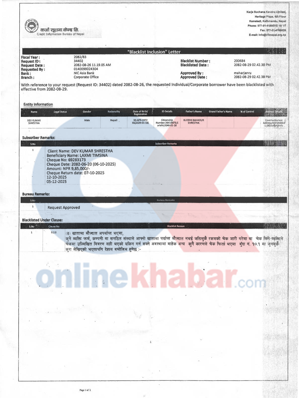Generated by OK AI. Editorially reviewed.- नेफ्स्कुन सञ्चालक देवकुमार श्रेष्ठ कर्जा सूचना केन्द्रको कालोसूचीमा परे पनि पदमा बहाल छन्।