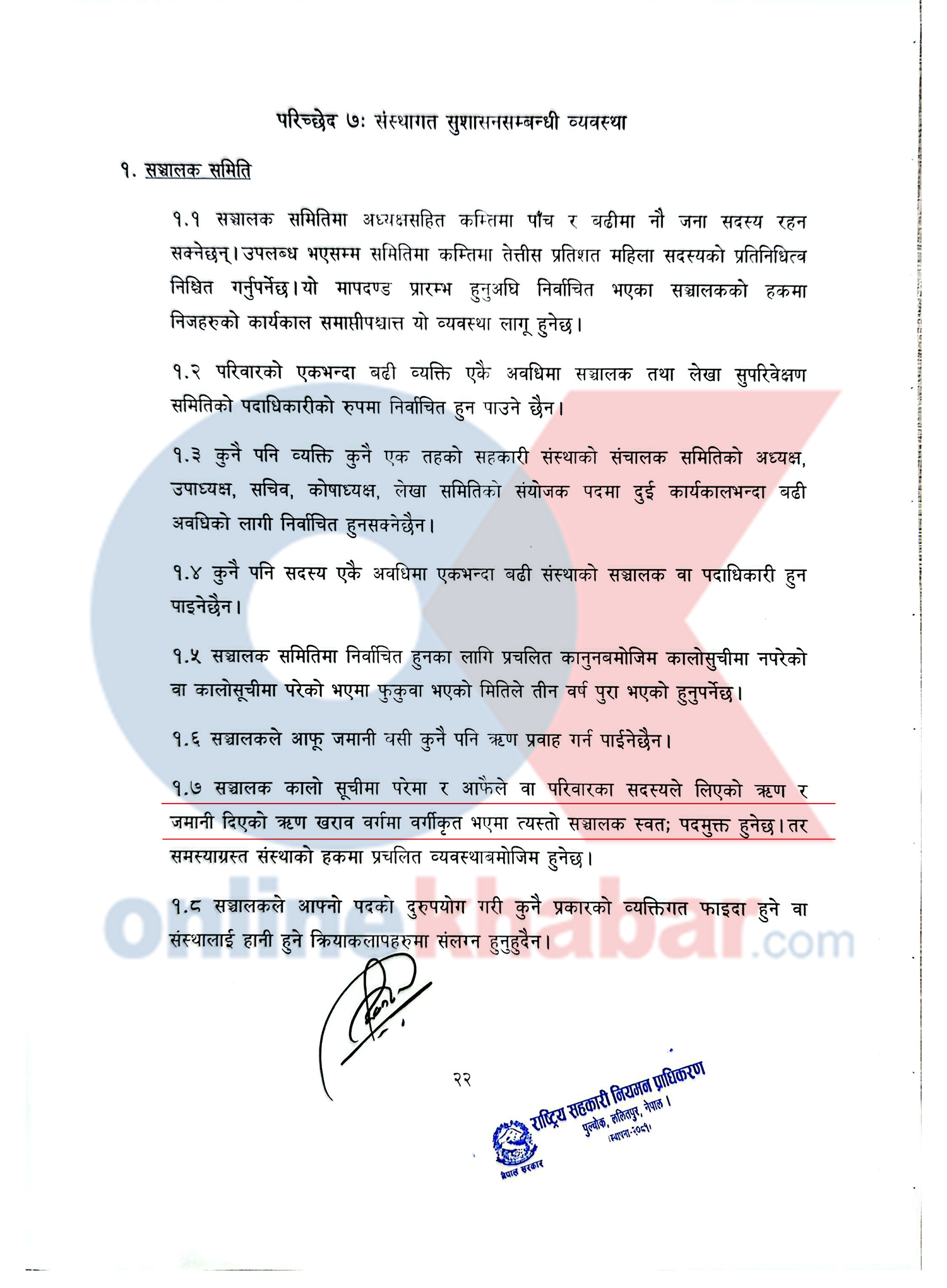 - सहकारी नियमन प्राधिकरणको मापदण्ड अनुसार कालोसूचीमा परेका सञ्चालक स्वतः पदमुक्त हुने व्यवस्था छ।