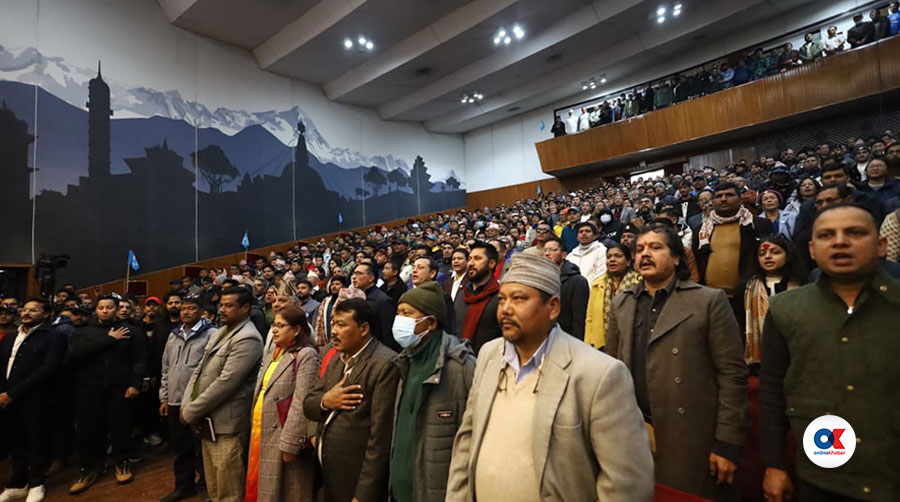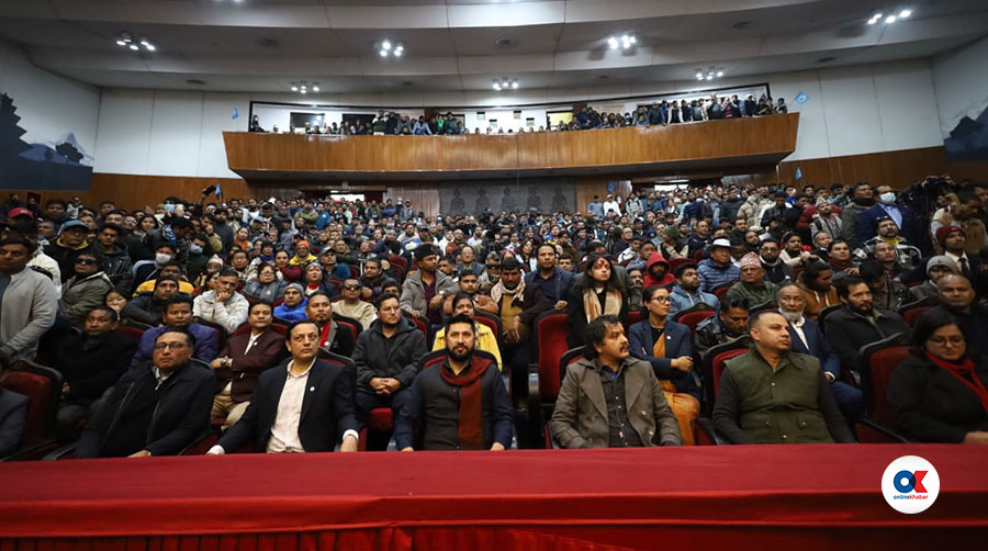 २१ पुस, काठमाडौं । राष्ट्रिय सभा गृहको हल सोमबार खचाखच थियो । भित्र नअटेका कार्यकर्ता बाहिर चौरमा घाम तापिरहेका थिए । पार्टीबाट शीर्ष तहका नेताहरूको अनुहार खासै नदेखिए पनि करिब एक बजे कार्यकर्ताको जमघट सुरु भइसकेको थियो ।