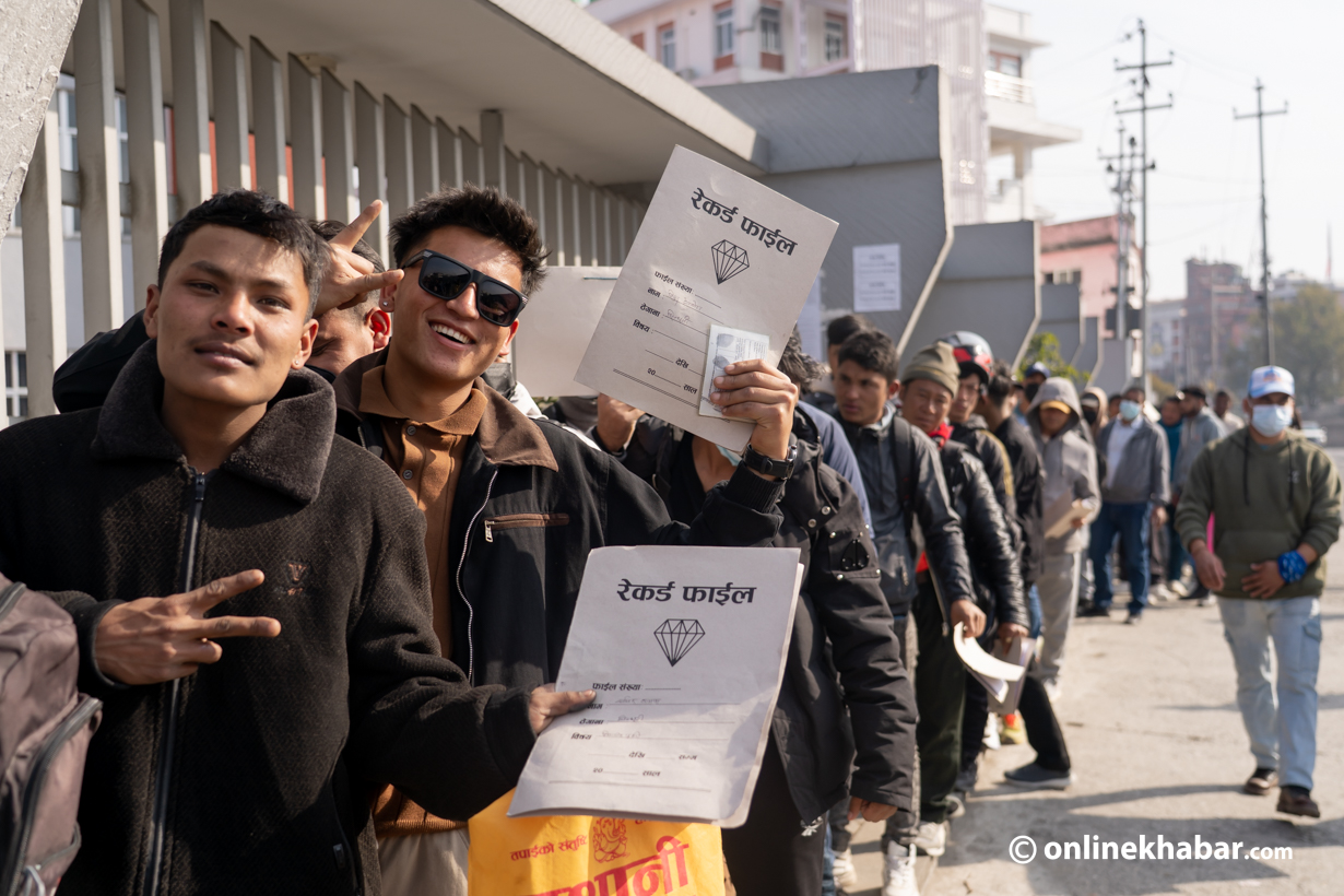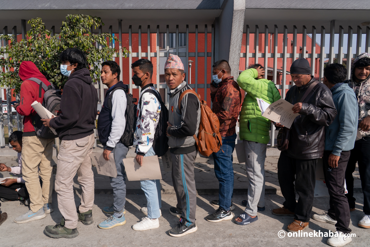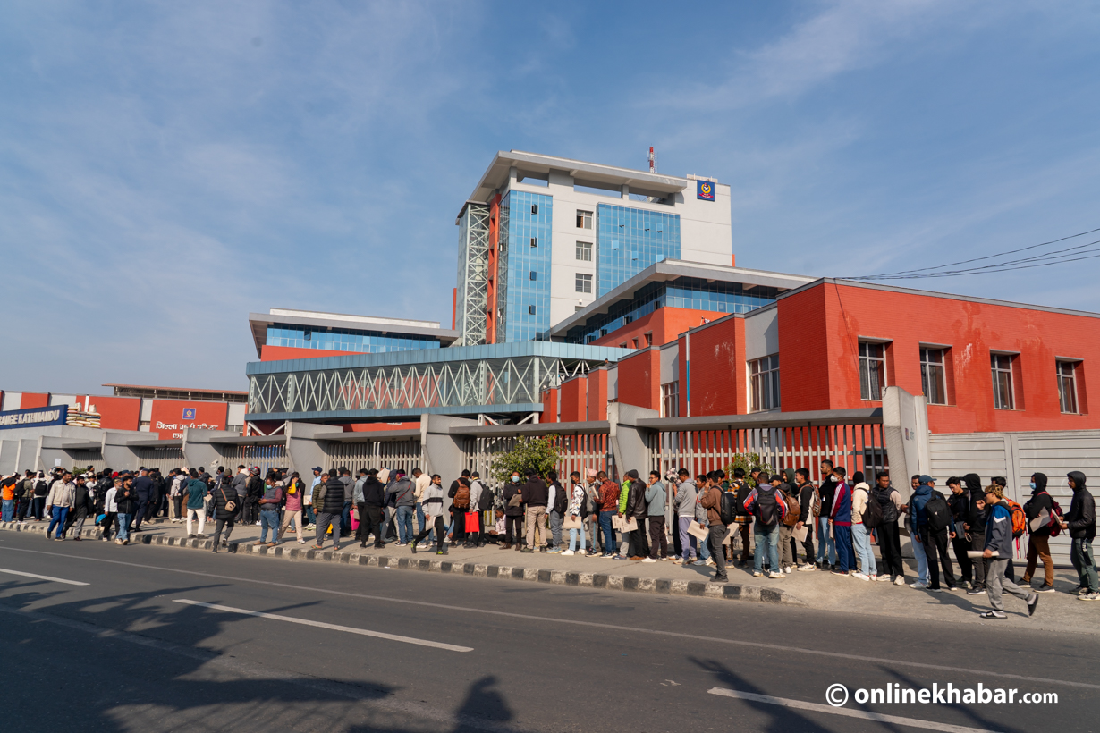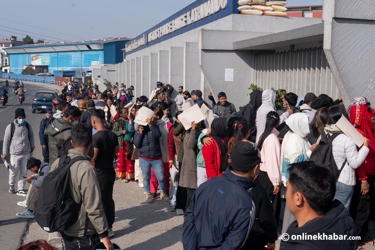 २५ पुस, काठमाडौं । आगामी फागुन २१ गते हुने प्रतिनिधिसभा निर्वाचनका लागि नेपाल प्रहरीले निर्वाचन प्रहरी भर्ना खुलाएसँगै शुक्रबारदेखि आवेदन प्रक्रिया सुरु भएको छ । आवेदन खुलाएकै पहिलो दिन काठमाडौंको भद्रकालीस्थित जिल्ला प्रहरी परिसरमा आवेदकहरूको लामो लाइन लागेको छ ।