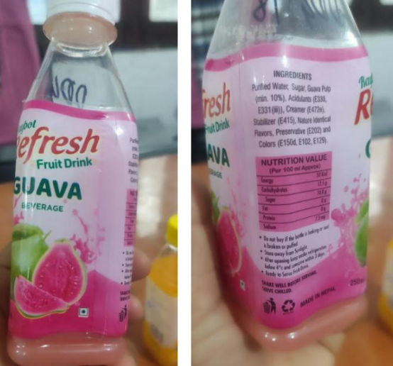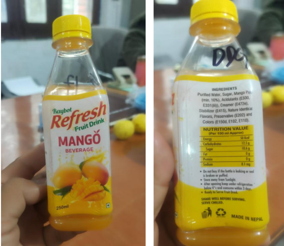 काठमाडौं दक्षिणकालीमा रहेको ‘रेबोट स्प्रिङ्स मिनरल वाटर प्रालि’ ले उत्पादन गरेको ‘रेबोट रिफ्रेस’ नामक जुस न्यून गुणस्तरको पाइएको हो । २ सय ५० मिलिलिटरको बट्टामा आउने आँपको स्वाद भएको जुस ब्याच नम्बर जेएम१२ र ब्याच नम्बर जेजी६ भएको अम्बाको जुस गुणस्तरहीन भेटिएको हो ।