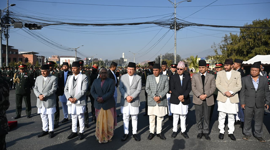 राष्ट्रपति पौडेल कार्यक्रम स्थल पुग्दा नेपाली सेनाको एक टुकडीले उनको सम्मानमा सलामी अर्पण गरेको थियो ।