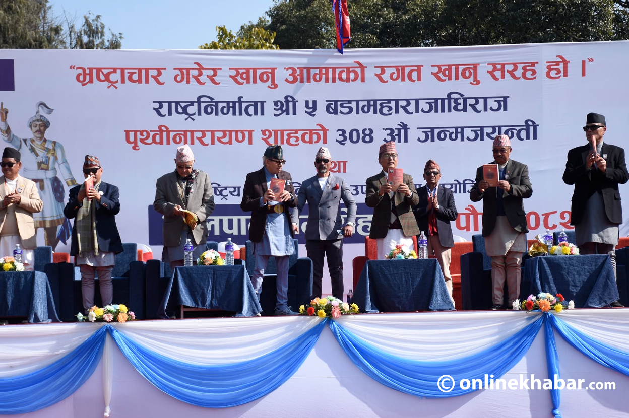 चियापानअघि राप्रपाले पृथ्वीनारायण शाहको शालिकमा माल्यार्पण गरेको थियो ।