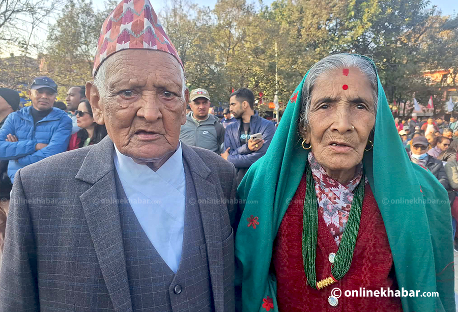 धादिङका ९३ वर्षीय नेत्रप्रसाद तिवारीलाई हिजो रातभर निद्रा लागेन । उनलाई आजको विशेष महाधिवेशन कस्तो हुने हो भन्ने चिन्ता थियो । ७९ वर्षीय श्रीमतीलाई साथमा लिएर उनी भृकुटीमण्डप आइपुगेका छन् ।