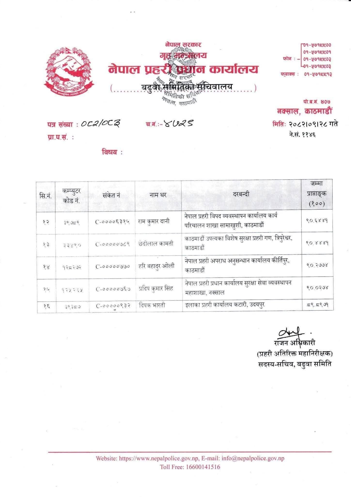 - धर्मराज भण्डारी, रबिन श्रेष्ठ, दीलिपकुमार गिरी लगायत १५ जना डीएसपीलाई पनि एसपीमा बढुवा गर्न सिफारिस गरिएको छ।