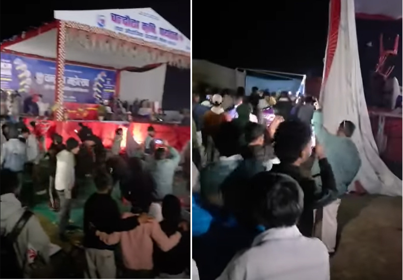 सामाजिक सञ्जालमा भाइरल भिडियोमा स्टेजमा ढुङ्गा हानिएको, कुर्सी फ्याँकिएको र ब्यानर च्यातिएको देख्न सकिन्छ ।