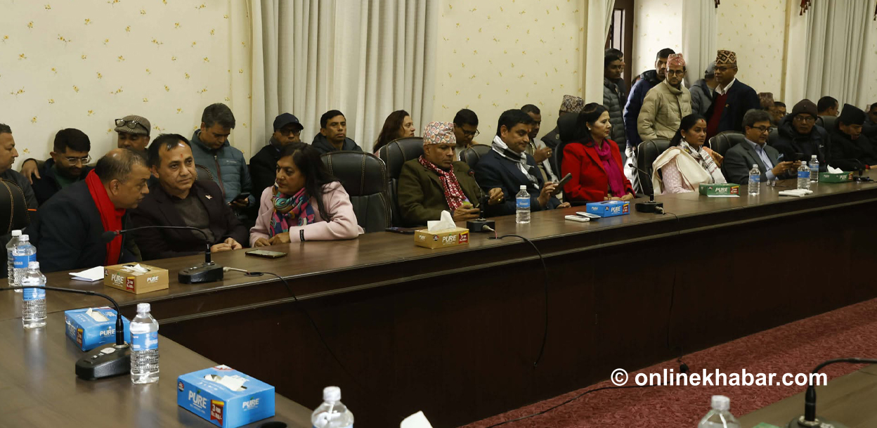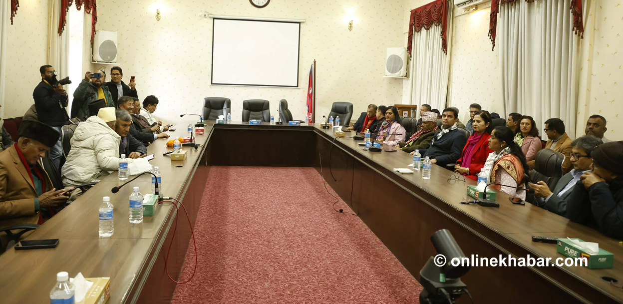 अहिले आयोगमा भइरहेको छलफलमा थापा, उपसभापतिद्वय विश्वप्रकाश शर्मा र पुष्पा भुसालसहित पदाधिकारी छन् । त्यस्तै कानुन व्यवसायीहरू पनि सहभागी छन् ।