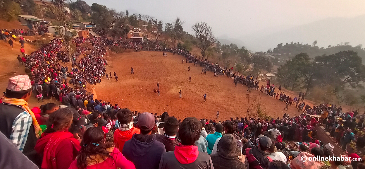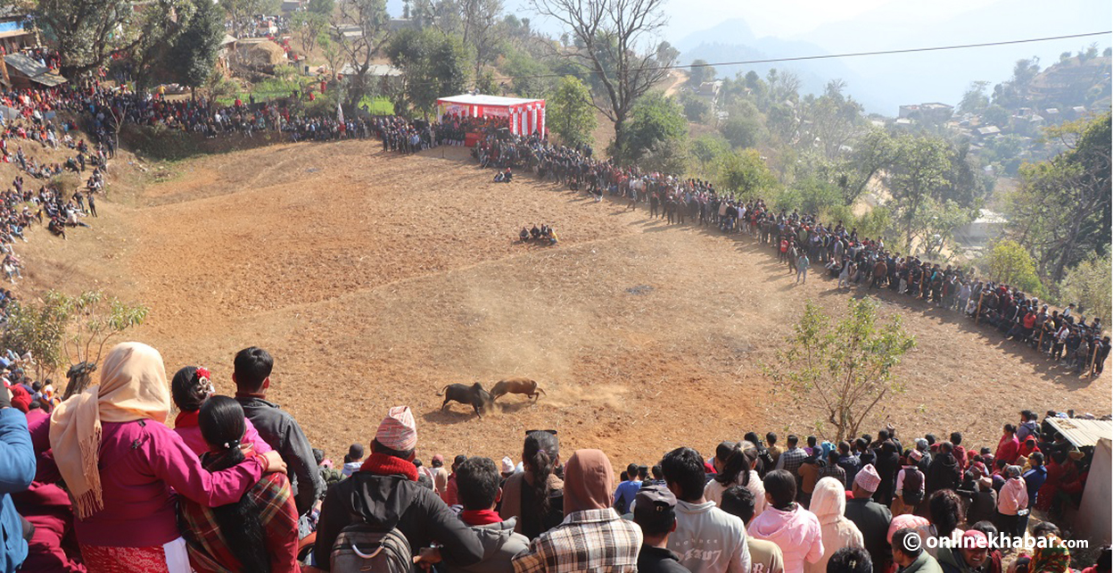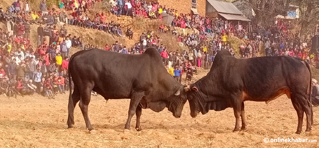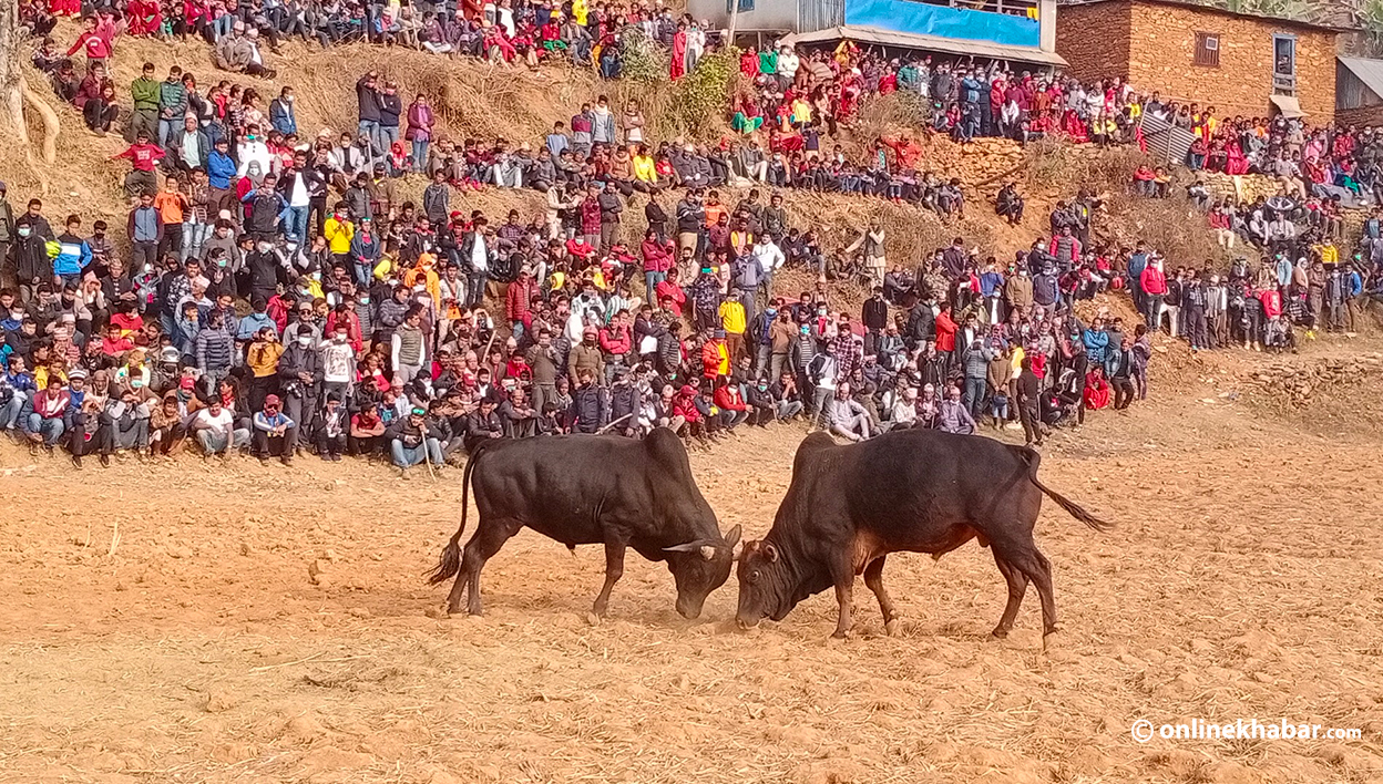 स्पेनको ‘बुलफाइट’ बिर्साउने तारुकाको गोरु जुधाइ