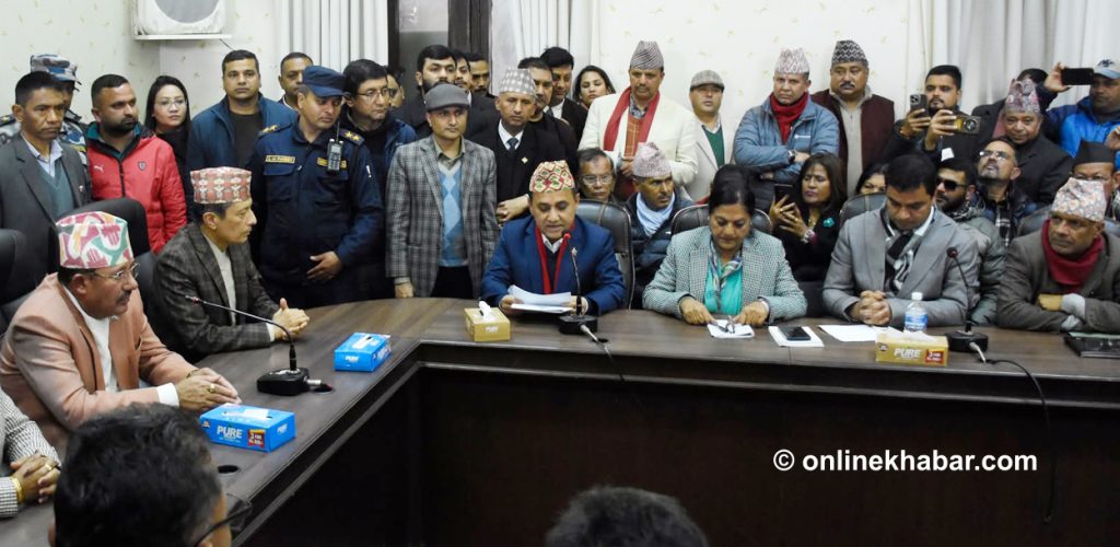 उपसभापति विश्वप्रकाश शर्माको नेतृत्वमा गएको केन्द्रीय कार्यसमितिका पदाधिकारी र सदस्यहरूले विधानमा भएको विशेष महाधिवेशनको व्यवस्थाबारे स्पष्ट पारिरहेका हुन् ।