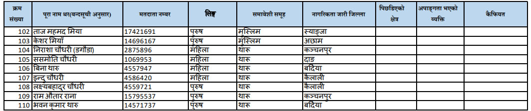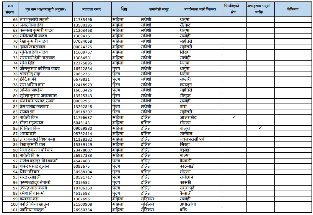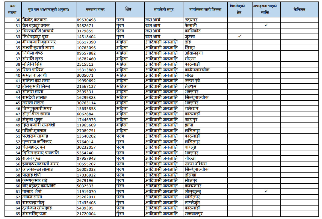 - आदिवासी जनजाति महिलामा भीमकुमारी बुढामगर पहिलो नम्बरमा सूचीबद्ध छ।