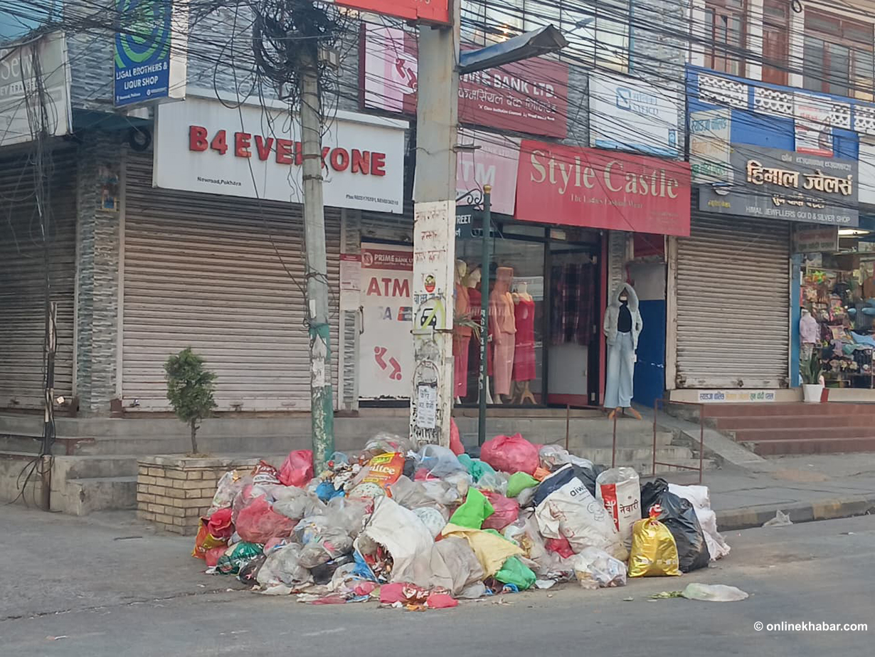 यी दुई दृश्य उदाहरण मात्रै हुन्, पोखरामा केही दिनदेखि मुख्य सडक र चोकहरूमा यही नियति पटकपटक दोहोरिएको छ । फोहोर व्यवस्थापन समस्याको चंगुलमा फस्दा पोखरामा केही दिनदेखि फोहोर उठ्न सकेको छैन । मुख्य सडक र चोकहरूमै फोहोर थुपारिँदा दैनिक सयौं पर्यटक आउजाउ गर्ने पोखरा नै दुर्गन्धित बन्न पुगेको छ ।