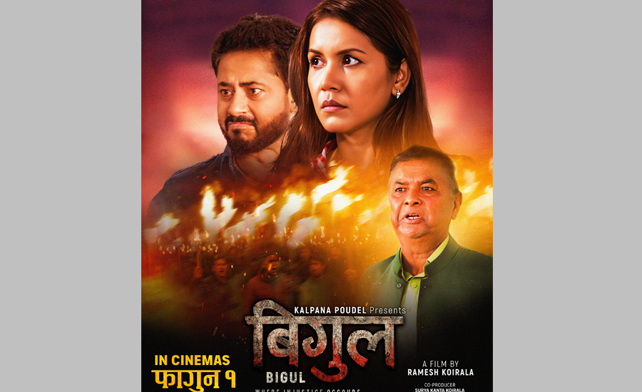काठमाडौं । कांग्रेस नेता समेत रहेका दिनेश कोइरालाले निर्माण गरेको फिल्म ‘बिगुल’ को प्रदर्शन मिति घोषणा भएको छ । कथाकार समेत रहेका कोइरालाले यो राजनीतिक कथावस्तुको फिल्म १ फागुनमा देशब्यापी प्रदर्शनमा आउने जनाएका छन् ।