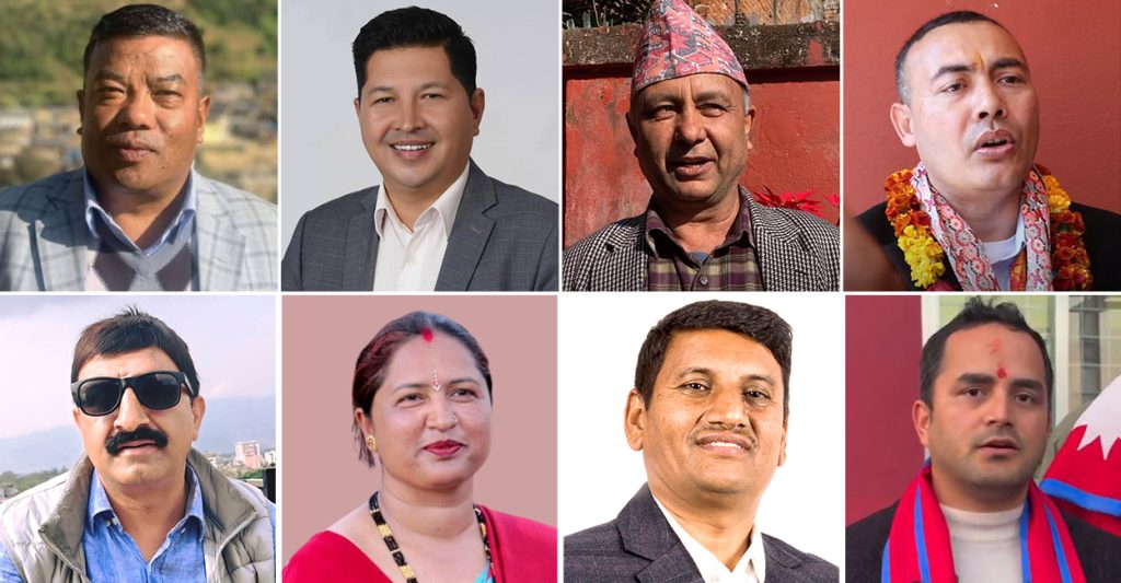 क्षेत्र नम्बर १ का सहायक निर्वाचन अधिकृत पूर्णप्रसाद शर्माका अनुसार नेपाली कांग्रेसका भीमबहादुर श्रीस राना, नेकपा एमालेका हिराबहादुर केसी, राष्ट्रिय जनमोर्चाका कृष्णप्रसाद अधिकारी, रास्वपाका सुशील खड्का, प्रगतिशील लोकतान्त्रिक पार्टीका चित्रप्रसाद सापकोटा लगायतले उम्मेदवारी दर्ता गराएका छन् ।