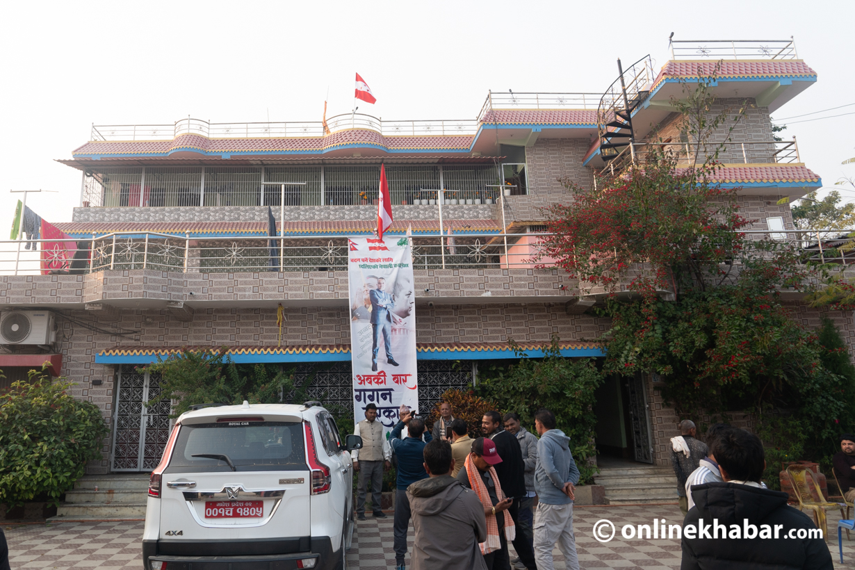 ८ माघ, सर्लाही । ‘अबकी बार गगन सरकार !’ नेपाली कांग्रेसका सभापति गगन थापाको पूर्ण कदको तस्बिरसहितको ब्यानर टाँसिएको छ । टाढैबाट देखिन्छन्, राता–हरिया झन्डाहरू ।
