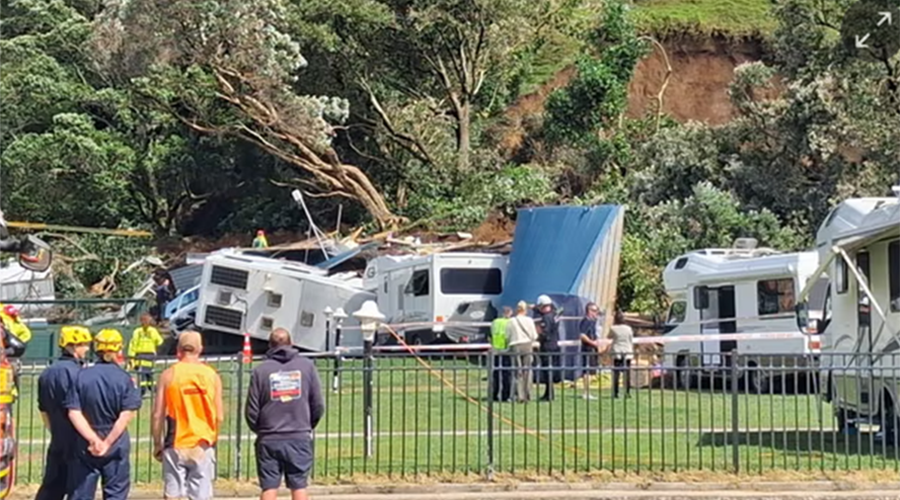 बिहीबार बिहान करिब ९:३० बजे माउन्ट माउन्गानुईको फेदीमा रहेको ‘बिचसाइड होलिडे पार्क’ मा ठूलो पहिरो खस्दा त्यहाँ रहेका क्याम्परभ्यान, कार, टेन्ट र भवनहरू पुरिएका हुन्।
