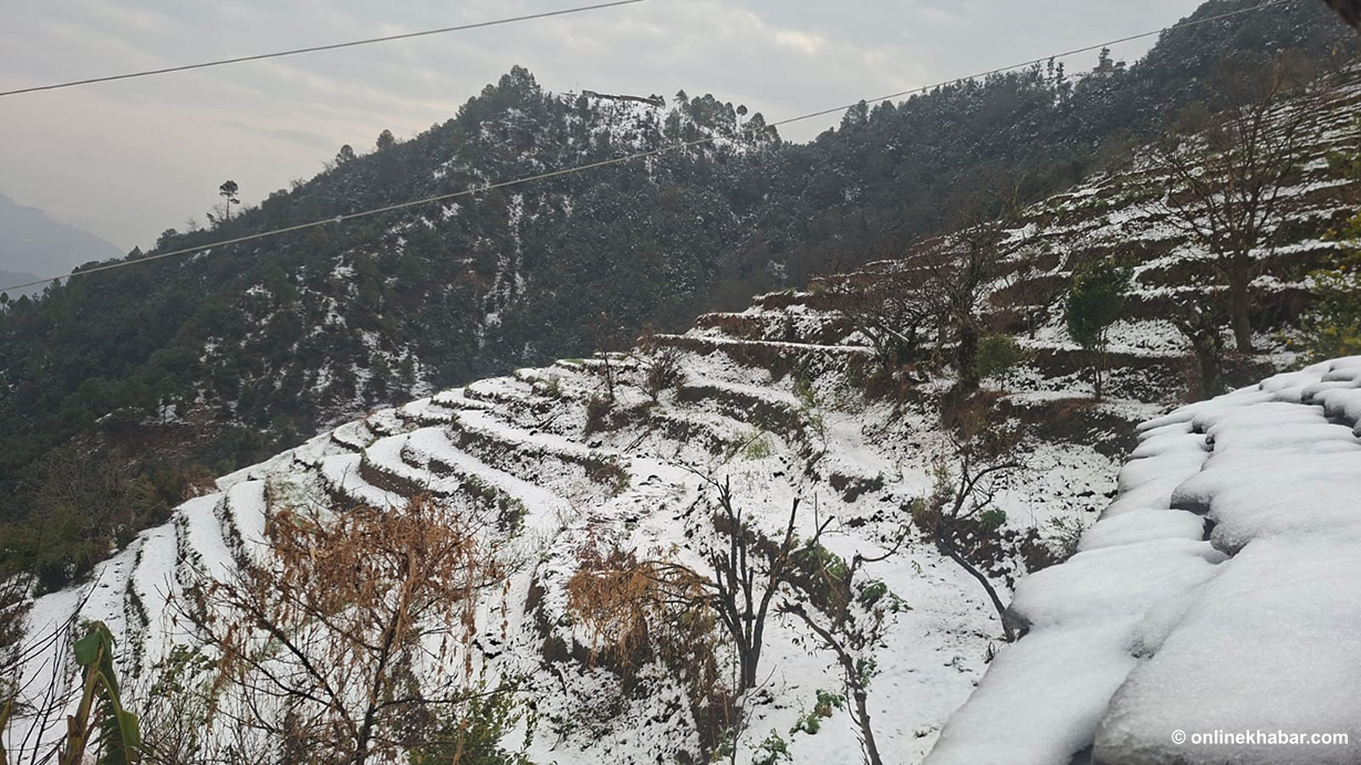 १० माघ, बैतडी । बैतडीमा हिमपातसहित वर्षा भएको छ । शुक्रबार राति यहाँका उच्च लेकाली भेगमा हिमपातसँगै वर्षा भएको छ ।