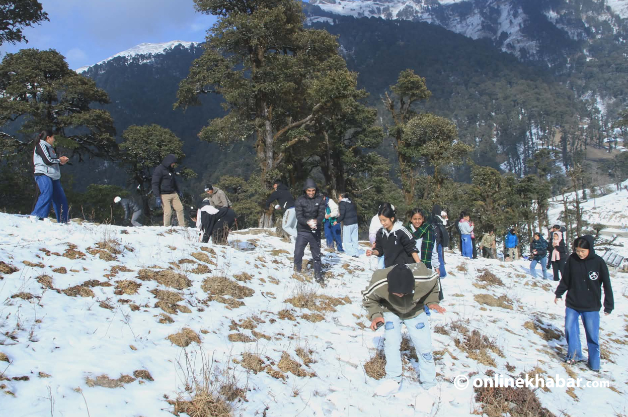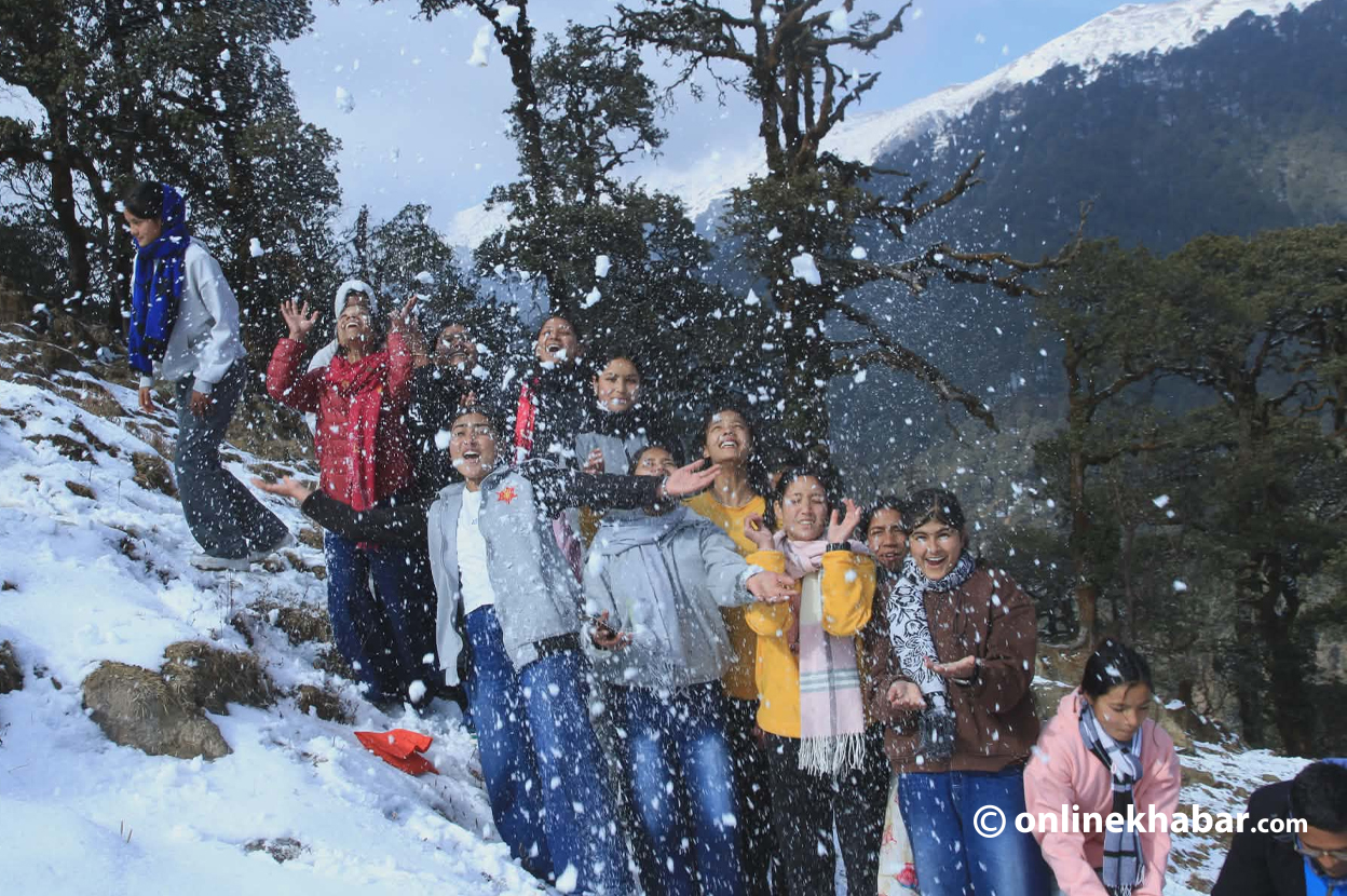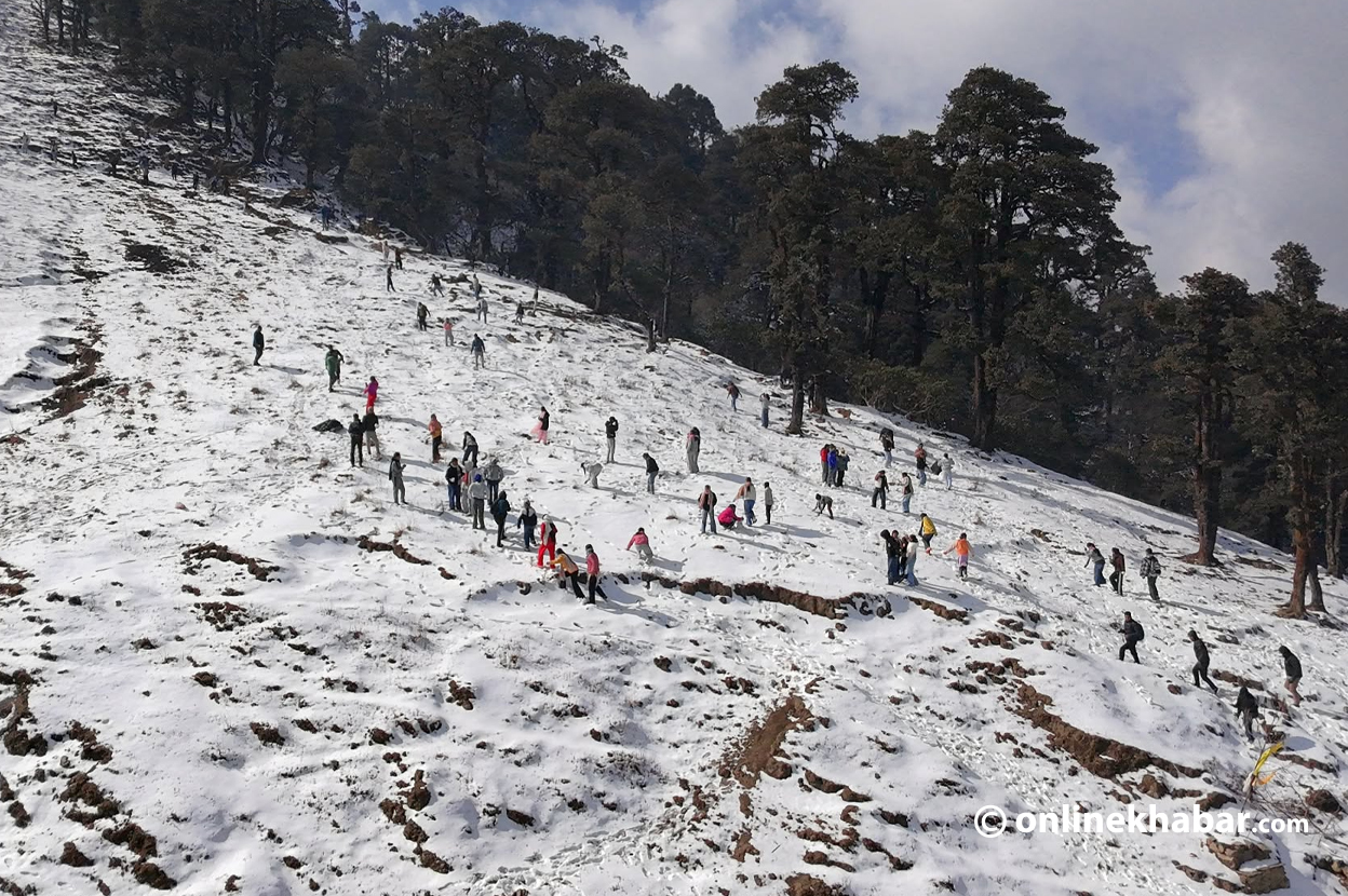 ‘हिउँ त पहिले पनि देखियो, तर पातिहाल्नाको यो उचाई र यहाँबाट देखिने हिमालको दृश्य साँच्चिकै मनमोहक दृष्य छ,’ हिउँ खेल्न आएका एक आन्तरिक पर्यटकले आफ्नो अनुभव साटे ।