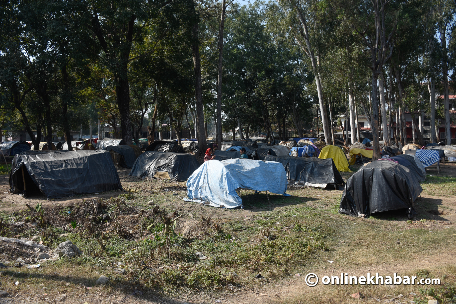 भगतपुरको खाली जग्गामा करिब ३०० टहराहरू छन्, जहाँ आरक्षपीडित प्रौढ र बुढाबुढीहरू बसेका छन् । सन्तान र युवा भने त्यहाँ देखिँदैनन् किनभने तिनीहरू कमाउने वा अरू कामको सिलसिलामा भारत र विभिन्न ठाउँमा छन् ।