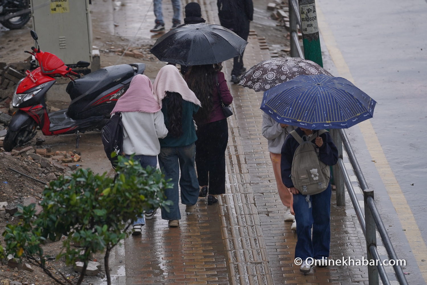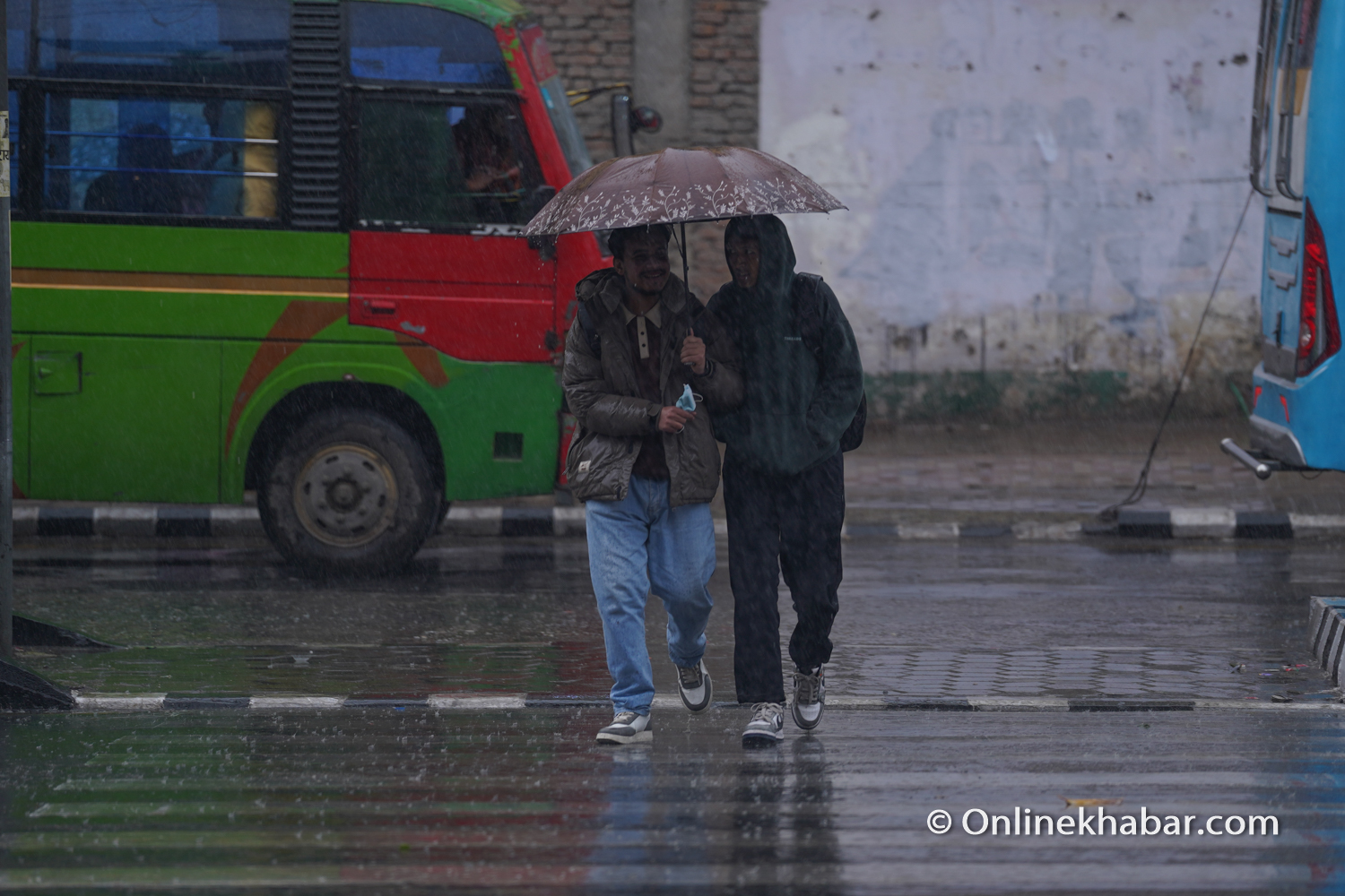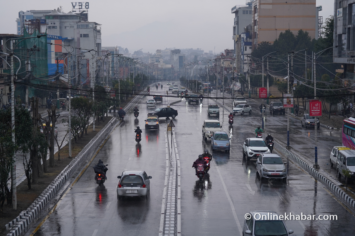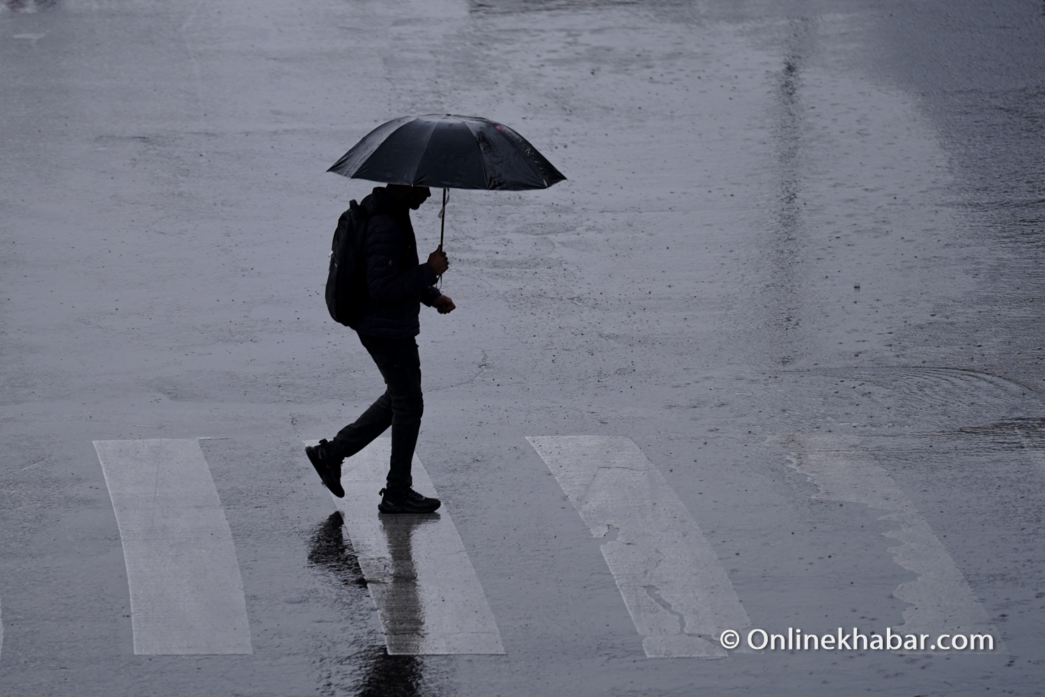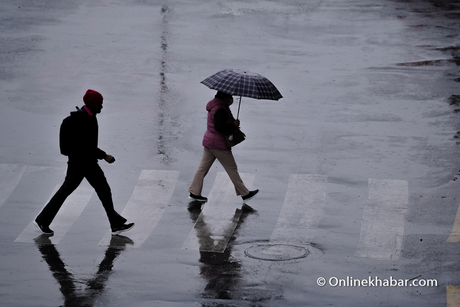 १४ माघ, काठमाडौं । पश्चिमी न्यून चापीय प्रणालीको प्रभावले काठमाडौं उपत्यकामा पनि वर्षा भएको छ ।
