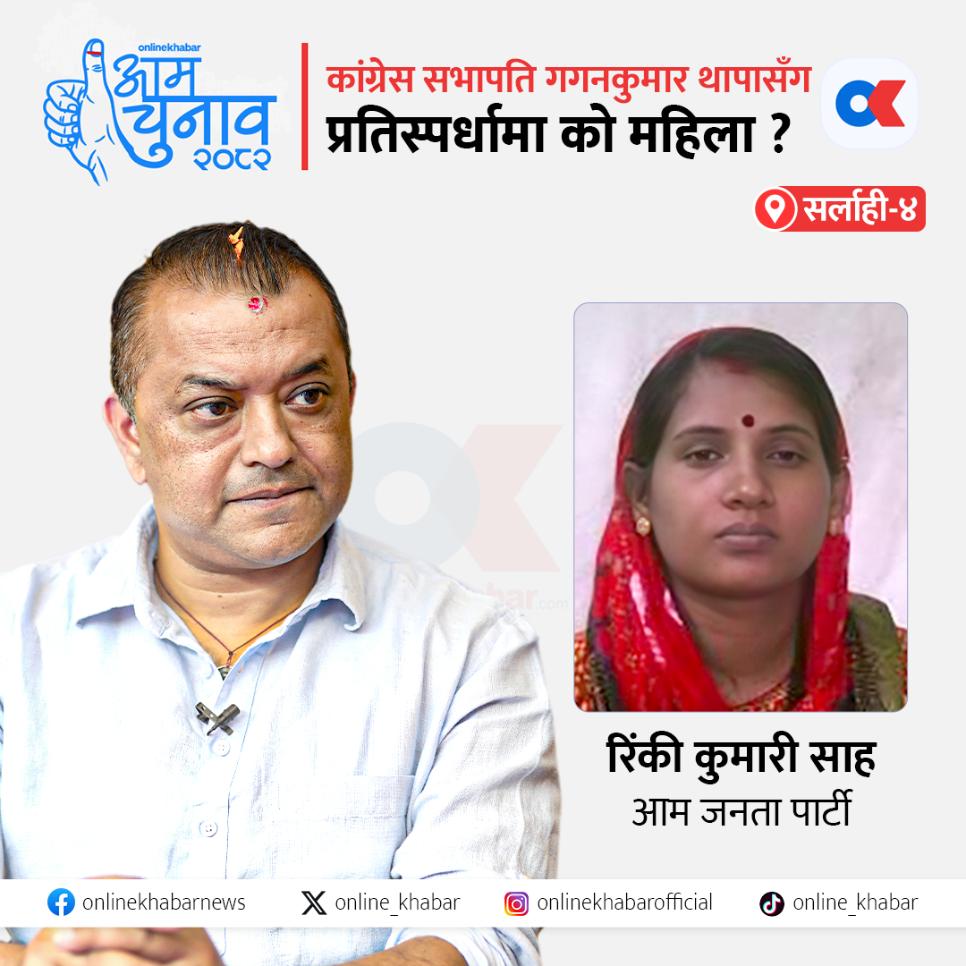 सर्लाही–४ मा ३८ जनाको उम्मेदवारी परेको छ । यो क्षेत्रमा गगनकुमार थापासँग आम जनता पार्टीकी उम्मेदवार रिंकीकुमारी साह एकमात्र महिला उम्मेदवार हुन् ।