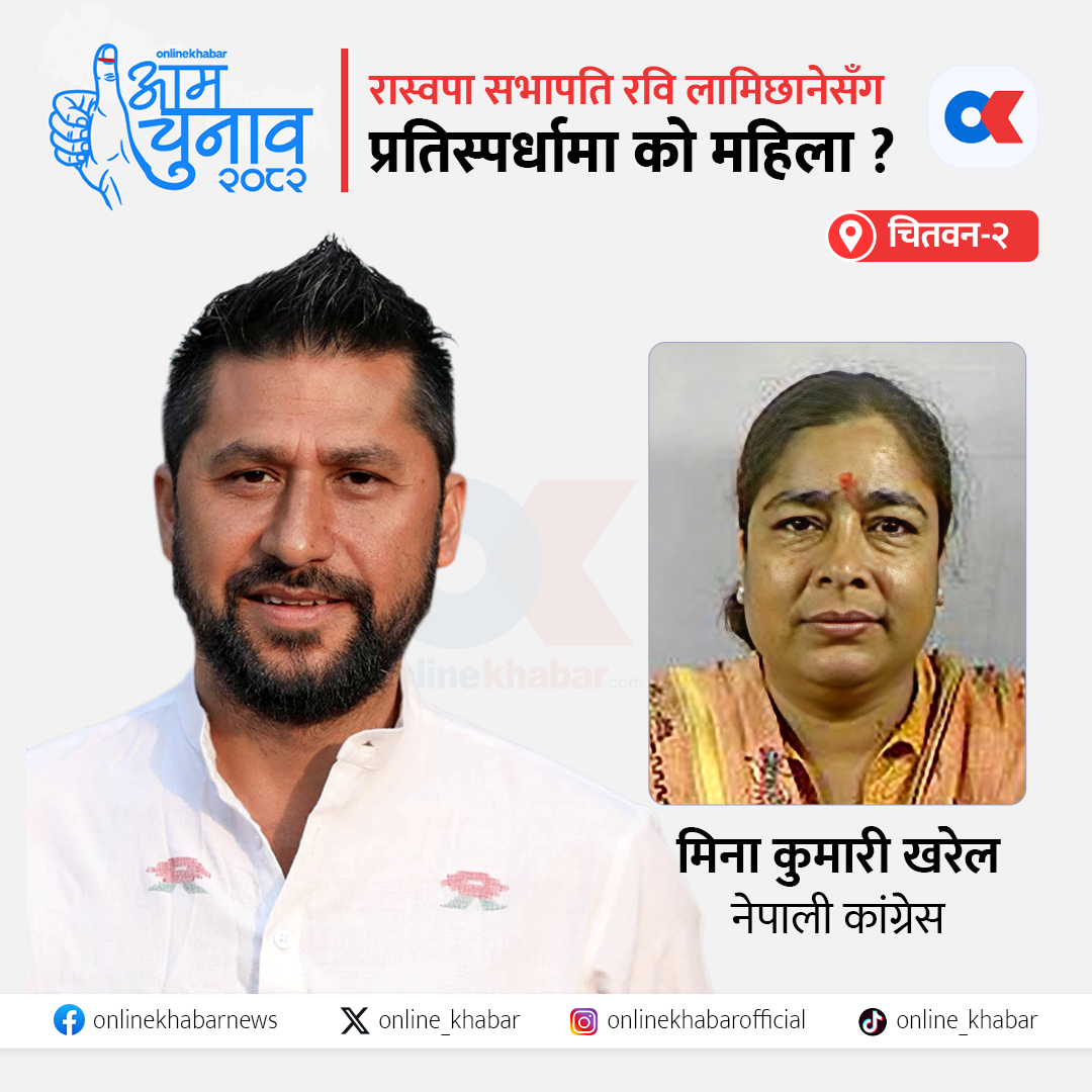 रास्वपा सभापति रवि लामिछाने चितवन–२ मा चुनाव लड्दैछन् । कांग्रेसले यहाँ नेतृ मीनाकुमारी खरेललाई प्रतिस्पर्धामा उतारेको छ । चितवनमा कांग्रेसको राजनीतिमा सक्रिय खरेलले समाजशास्त्रमा स्नातकोत्तर तहसम्म अध्ययन गरेकी छन् ।