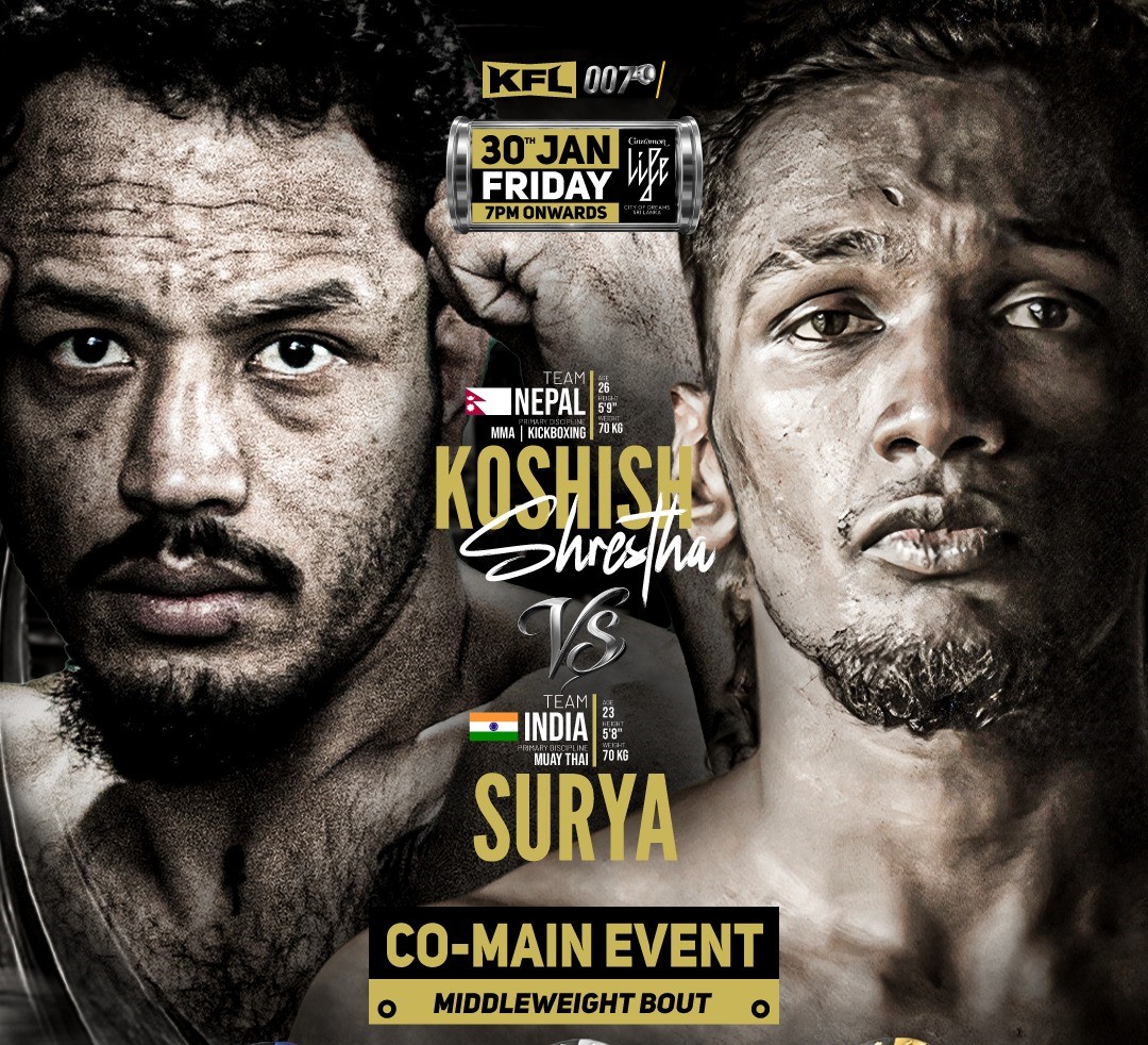 नेपालका कोसिसले भारतका सुर्यसँग को-मेन इभेन्ट अन्तर्ग मिडलवेइट बाउटमा प्रतिस्पर्धा गर्नेछन् ।