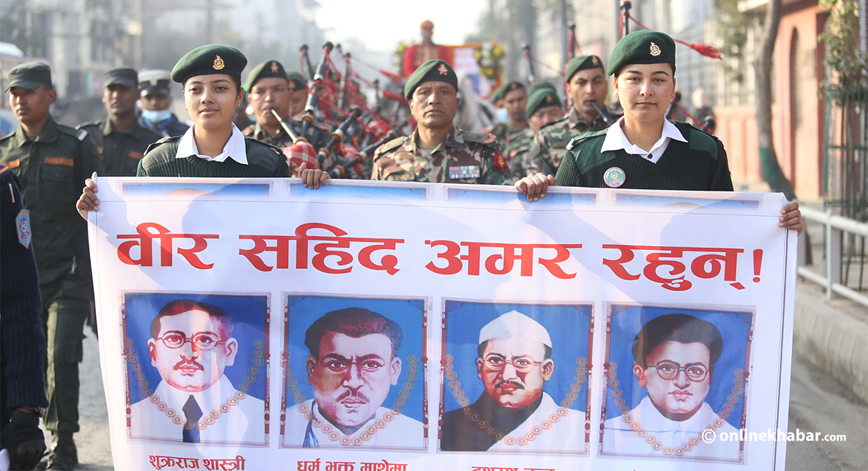 १६ माघ, काठमाडौं । शहीद दिवसको अवसरमा आज विभिन्न कार्यक्रमहरु आयोजना भइरहेका छन् । यसै अवसरमा काठमाडौं महानगरपालिकाको आयोजनामा शहीद स्मारक लैनचौरमा पनि विशेष समारोह आयोजना गरिएको छ ।