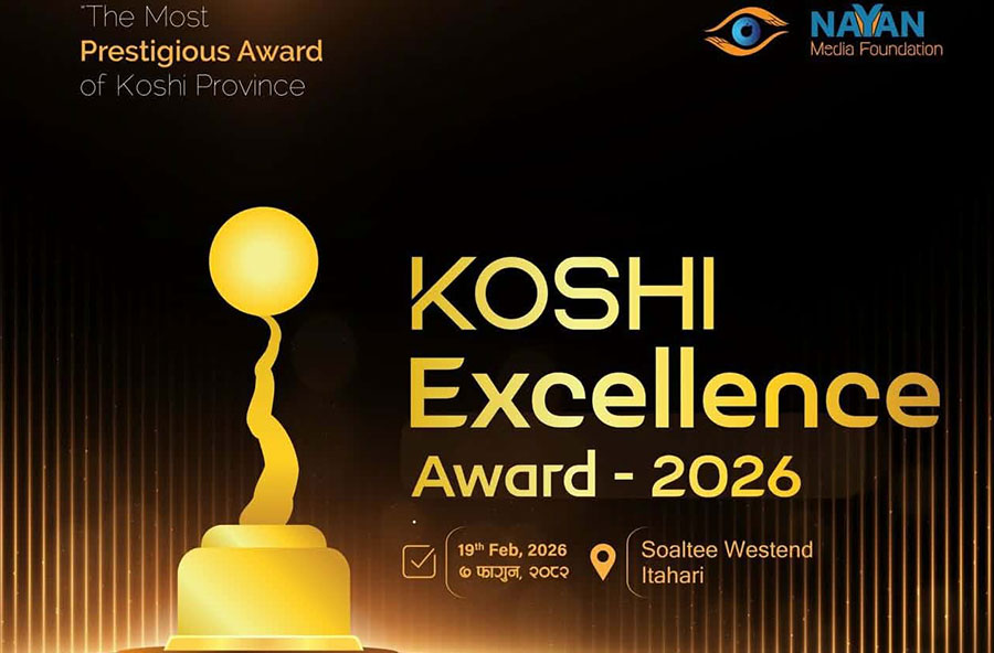 नयन मिडिया फाउन्डेसनको आयोजनामा आउँदो ७ फागुनमा इटहरीको सोल्टी वेस्ट्रन होटेलमा कोशी एक्सिलेन्स अवार्ड २०२६ आयोजना हुन लागेको हो ।