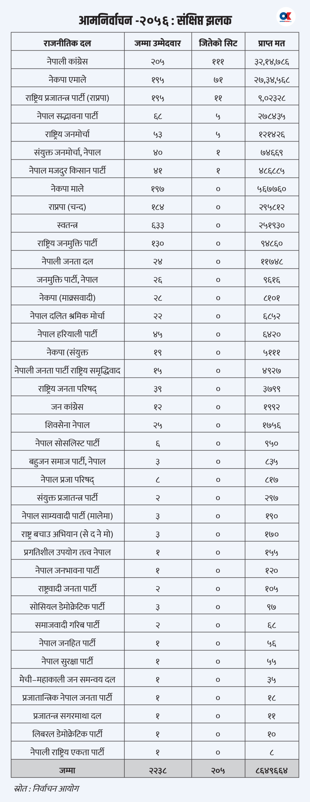 कांग्रेसलाई फेरि बहुमत, एमालेबाट चोइटिएको माले रित्तो