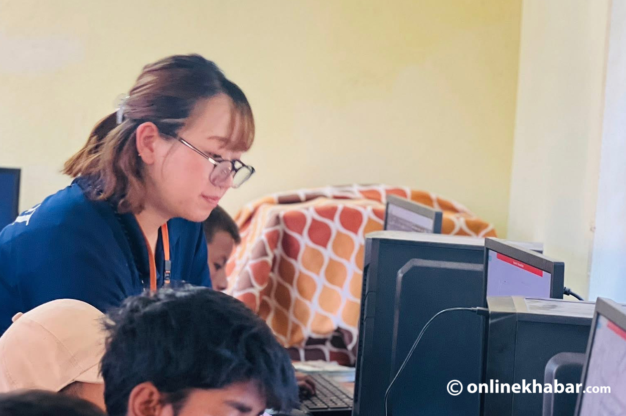 ‘१२ वटा कम्प्युटर छन् । केही बिग्रेका छन् । एउटै कम्प्युटरमा ४–४ जना विद्यार्थी राखेर सिकाइरहेको छु,’ उनले भनिन्, ‘इन्टरनेट पनि चल्दैन ।’ दुई वर्षका लागि नेपाल आएकी उनी नेपालमा राम्रो कम्प्युटर शिक्षा दिन आएकी हुन् ।