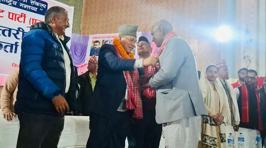 जिल्लास्तरीय कार्यकर्ता भेला तथा पार्टी प्रवेश कार्यक्रममा उनीहरूलाई एमाले उपाध्यक्ष रामबहादुर थापा (बादल) ले उनीहरूलाई पार्टीमा स्वागत गरेका थिए ।