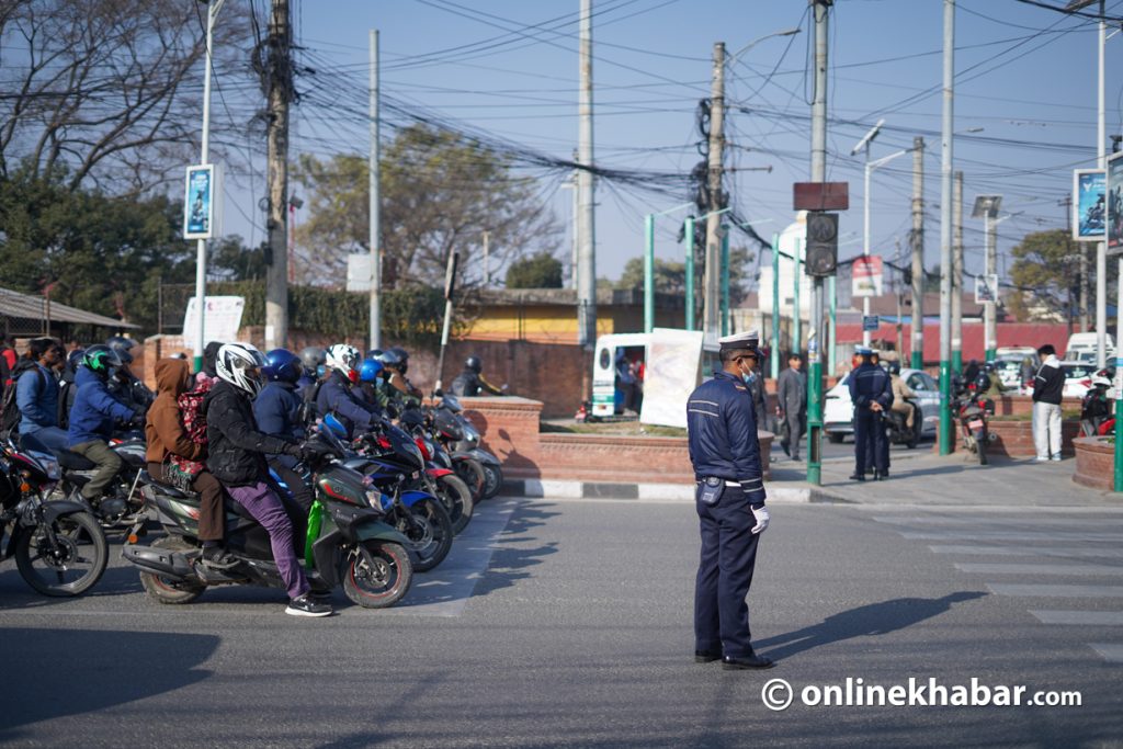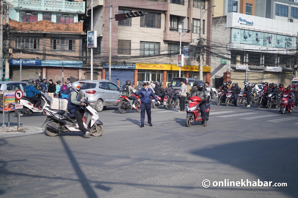 थापाथली-त्रिपुरेश्वर रुटमा ट्राफिक प्रहरी २४सै घण्टा जागा (तस्वीरहरू)