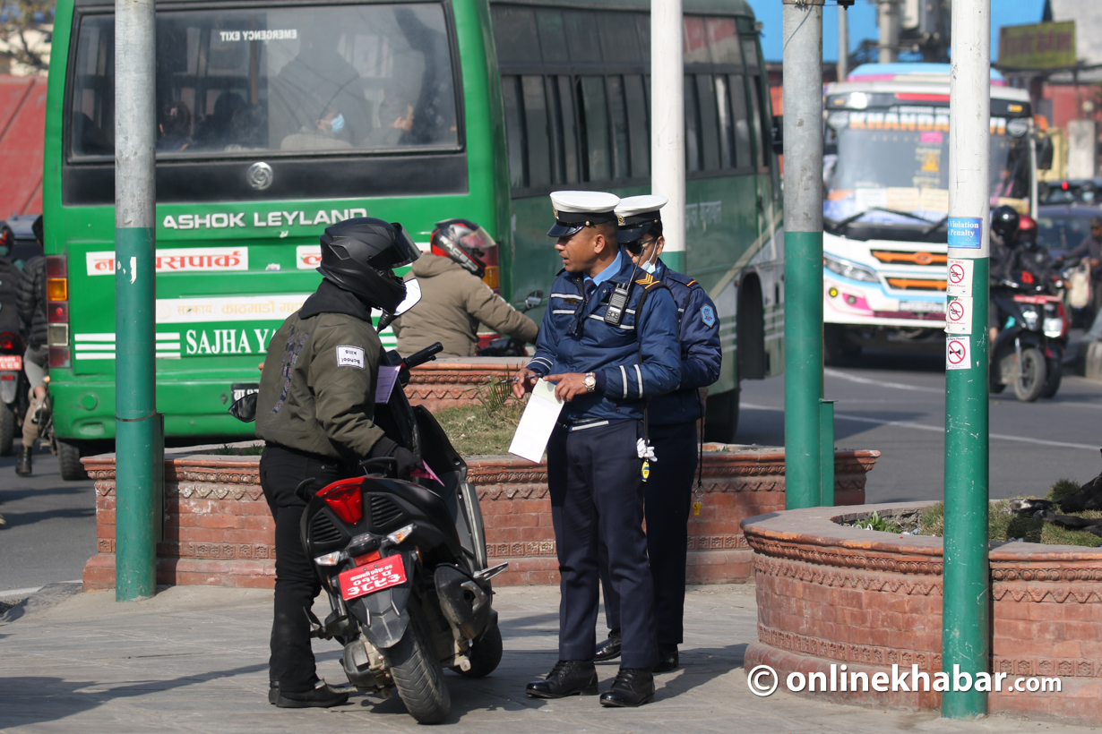 २० माघ, काठमाडौं । गत ८ माघमा ट्राफिक नियमविपरीत एक निजी सवारी चालकले थापाथलीको लेन क्रस गरे । तर उनलाई ट्राफिक प्रहरीले तत्काल कारबाहीको दायरामा ल्याउन सकेन । त्यसको १० दिनपछि थापाथलीस्थित ट्राफिक प्रहरी प्रभागले कारबाही गर्‍यो ।