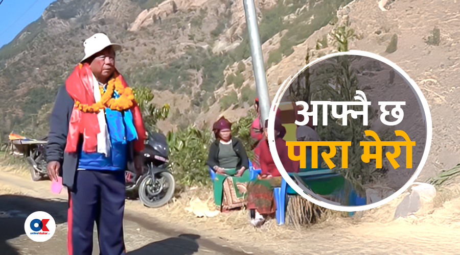 उनको खादा बोकिदिने र बाटो खुला गरिदिने सहयोगी छैन । झन्डा बोकिदिने र नारा भट्याइदिने कार्यकर्ता छैन । यी एक्लो मान्छे लखरलखर हिँड्दै मतदाता भेटिरहेका छन् ।