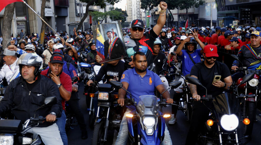 प्रदर्शनकारीहरूले भेनेजुएलाको झण्डा फहराए र मादुरोका समाजवादी पूर्ववर्ती ह्युगो चावेजको नाम राखिएको रातो रङको पहिरन लगाएका थिए ।