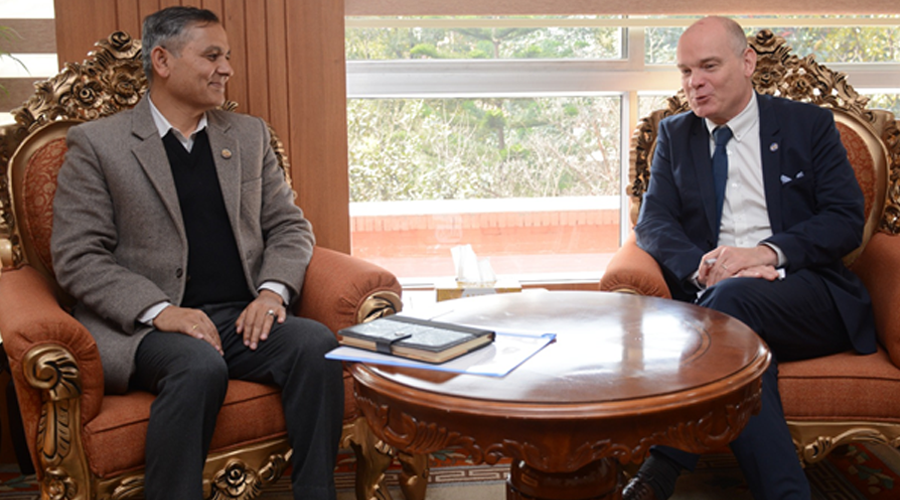 २१ माघ, काठमाडौं । गृहमन्त्री ओमप्रकाश अर्यालसँग संयुक्त राष्ट्र सङ्घीय लागुऔषध तथा अपराध नियन्त्रण कार्यालय (यूएनओडीसी) को दक्षिण एसिया हेर्ने क्षेत्रीय प्रतिनिधि क्रिस्टियन होल्जले शिष्टाचार भेट गरेका छन् ।