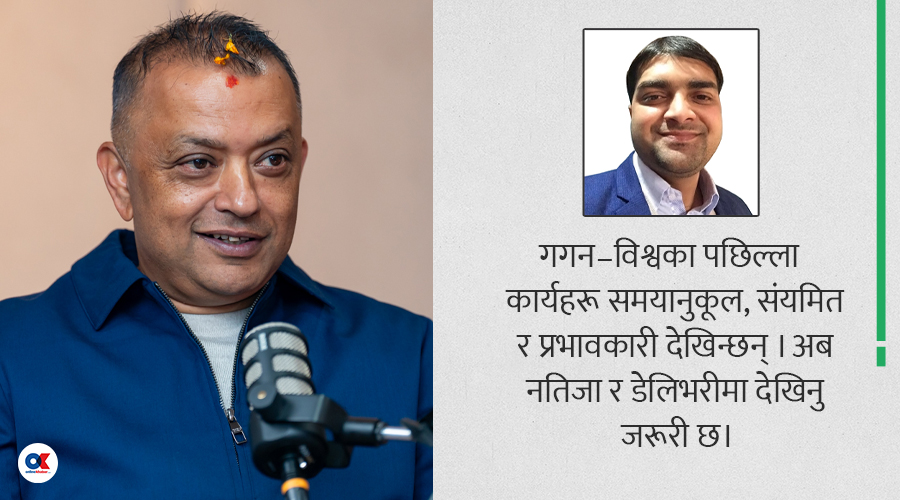 जेनजी विद्रोहपछि नेपालमा नयाँ राजनीतिक शक्तिहरूको उदय भएको छ । पुराना दलमाथि विभिन्न कोणबाट रूपान्तरणको चुनौती थपिएको छ। गगन–विश्वका पछिल्ला कार्यहरू समयानुकूल, संयमित र प्रभावकारी देखिन्छन्। अब नतिजा र डेलिभरीमा देखिनु जरूरी छ।