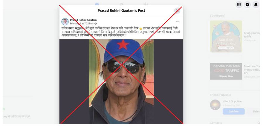 दावीकर्ता : प्रसाद रोहिणी गौतम, नेपाल न्युज फेसबुक पेज।