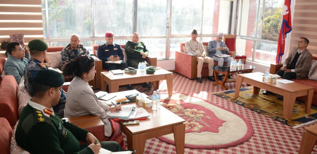 गृह मन्त्रालयमा आज शुक्रवार केन्द्रीय सुरक्षा समितिको बैठकमा मन्त्री अर्यालले सुरक्षाको मामलामा कुनै कमजोरी हुन नदिन हाई अलर्टमा रही काम गर्न मन्त्रालय मातहतका सुरक्षा निकायलाई निर्देशन दिए।